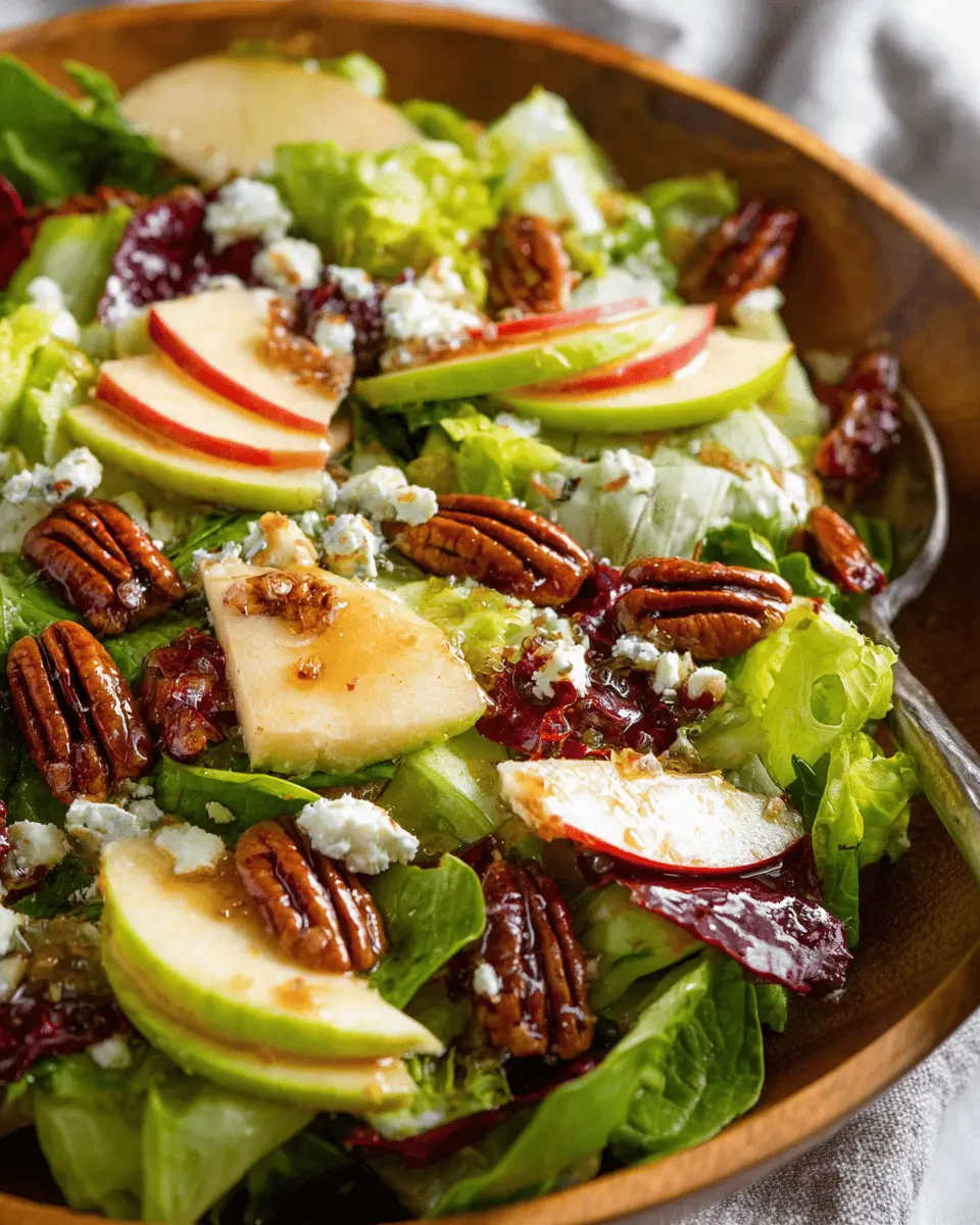 Absolutely! The apple pecan salad recipe is perfect for prepping ahead. Simply assemble the salad minus the dressing and store it in an airtight container in the refrigerator. For the best texture, add the dressing just before serving to keep the greens crisp and vibrant.