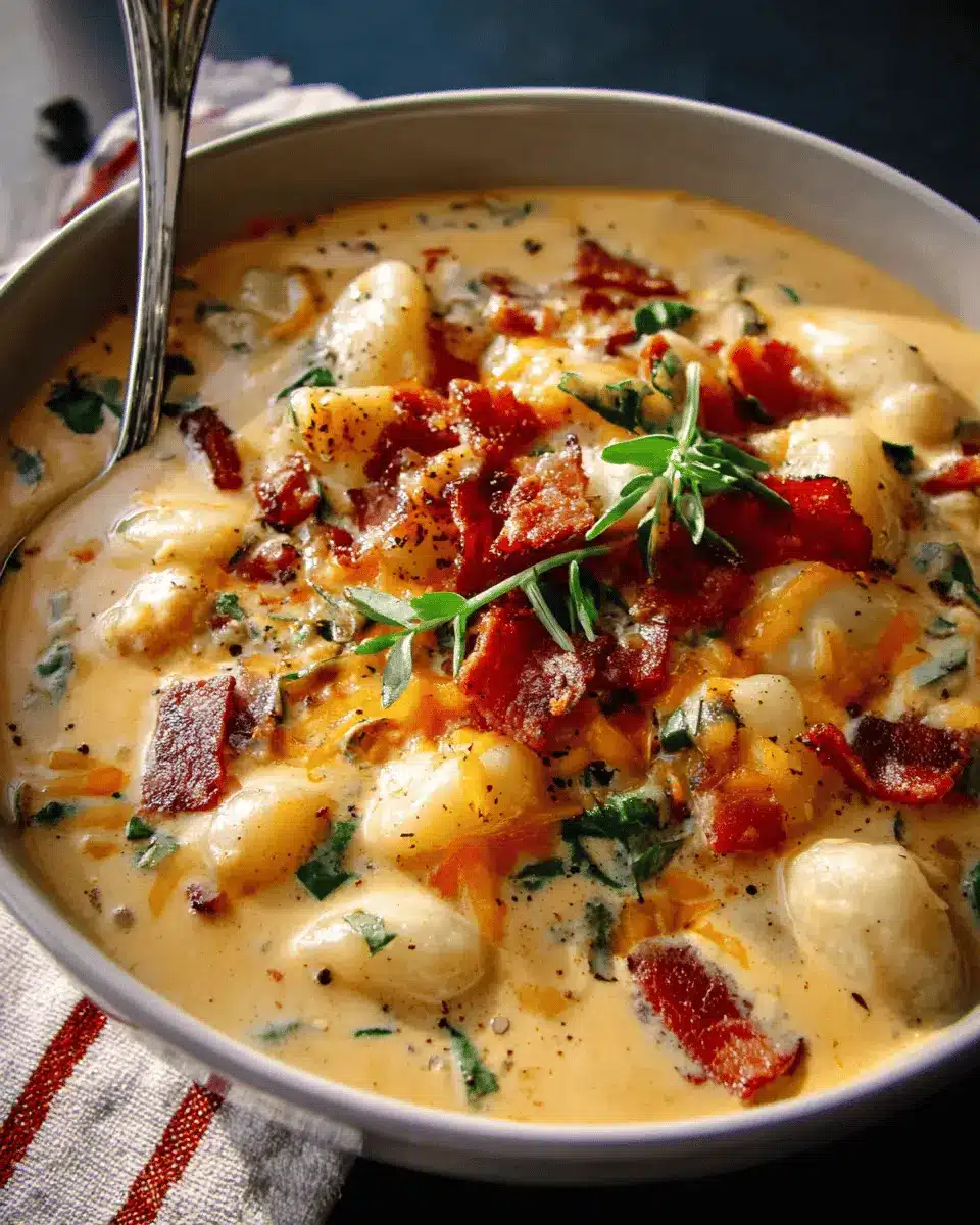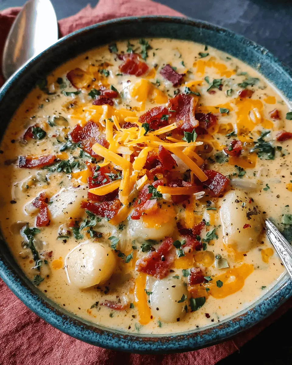 In summary, Turkey Bacon Cheddar Gnocchi Soup is a cozy dish perfect for any occasion. This creamy, flavorful soup brings together tender gnocchi and savory turkey bacon, making it a delightful comfort food that warms the soul. Try this recipe and enjoy the satisfying blend of flavors! For more variations on creamy soups, check out this article.