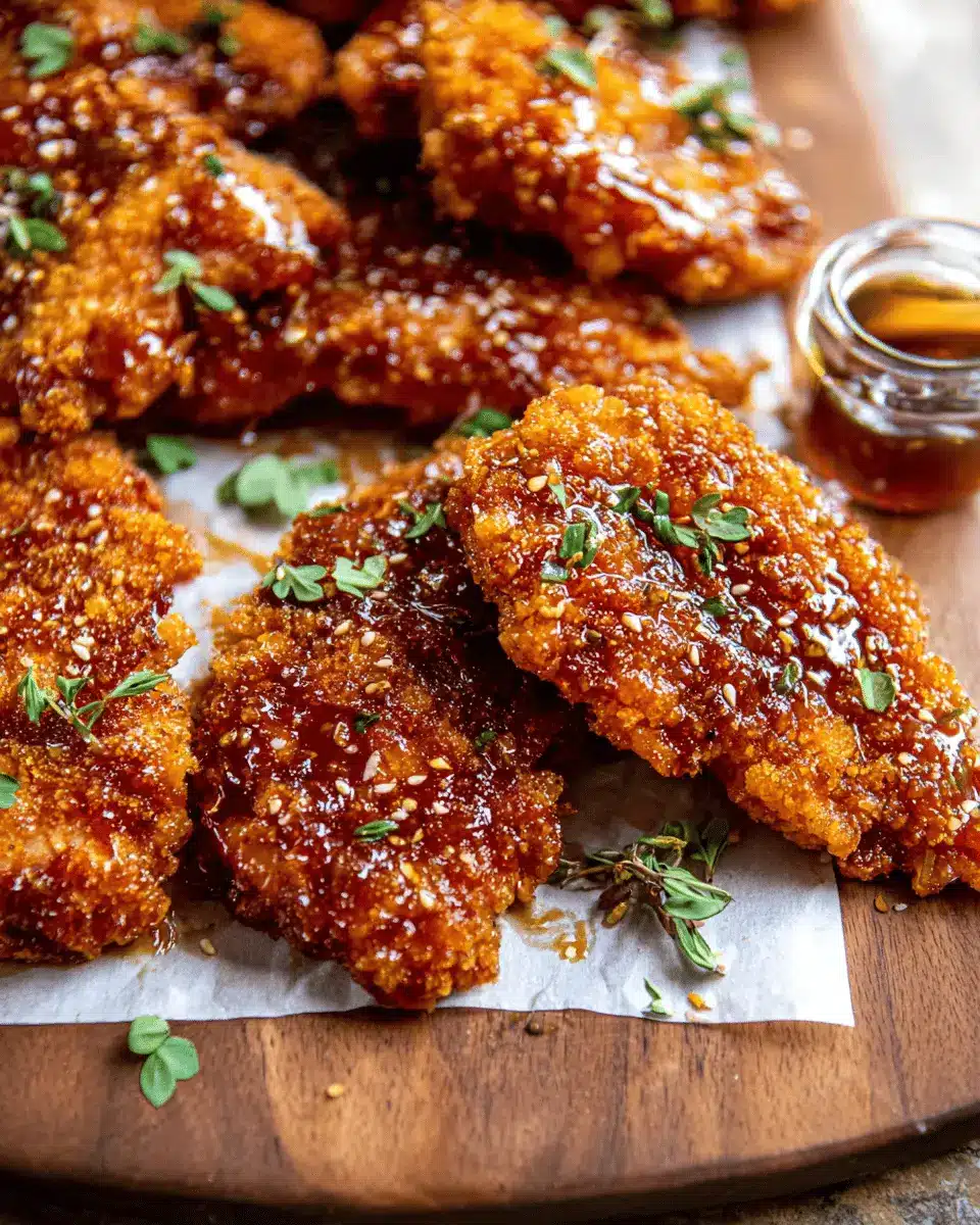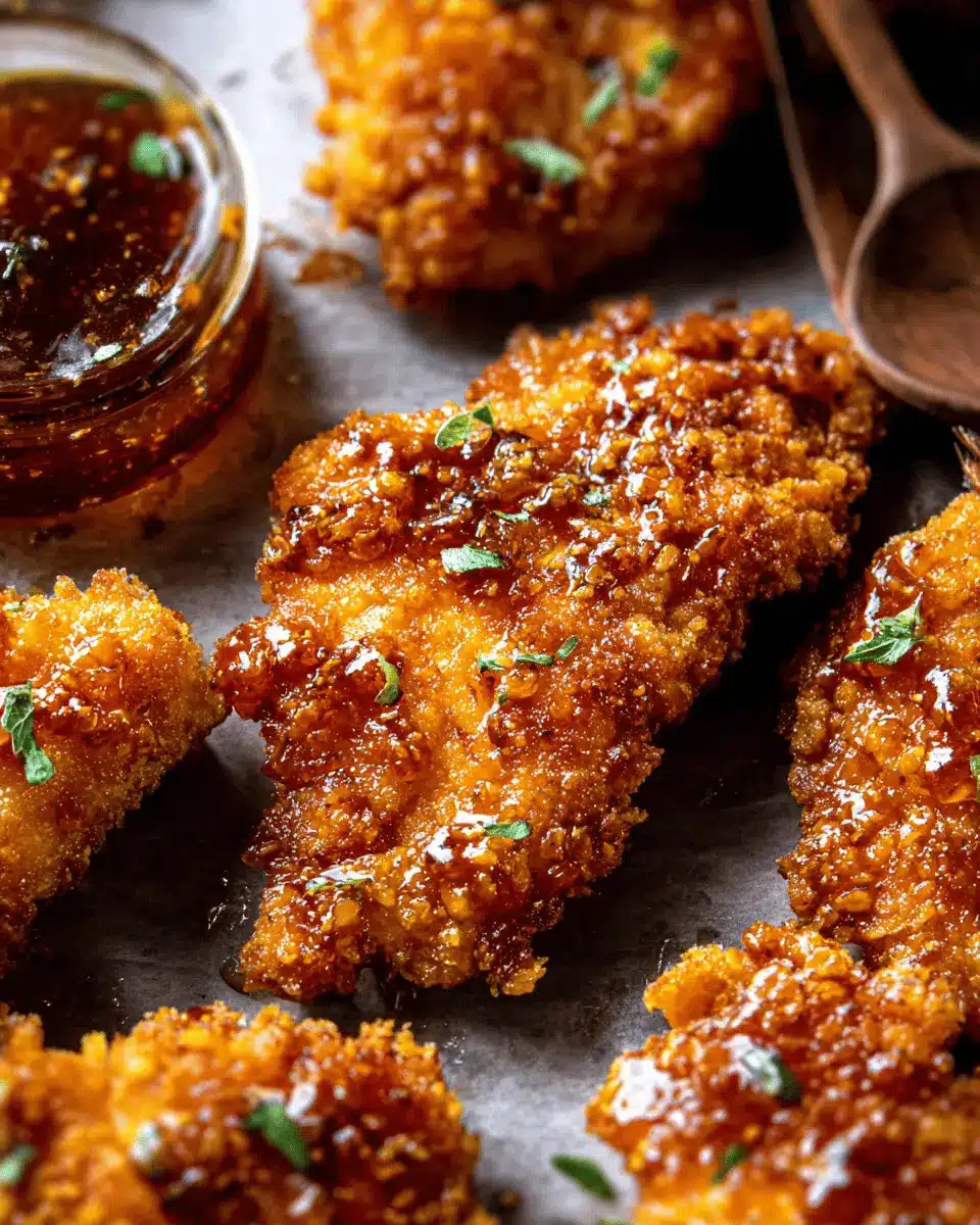 If cornflakes aren't your thing or you need a gluten-free option, consider using panko breadcrumbs, crushed crackers, or even rolled oats. Each will provide a delicious crunch while complementing the savory flavors in your Baked Crunchy Hot Honey Chicken.