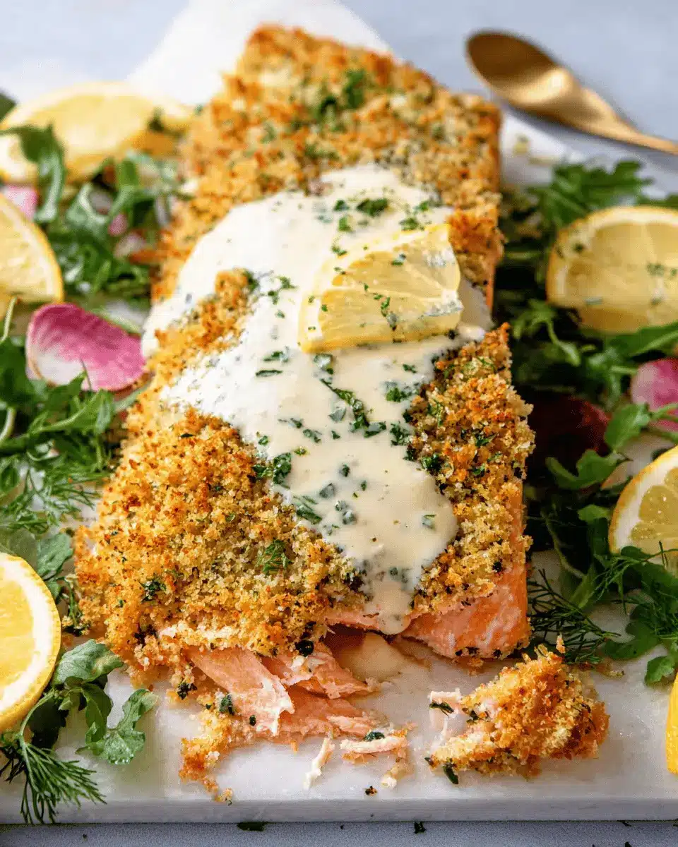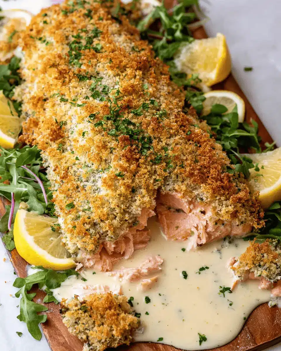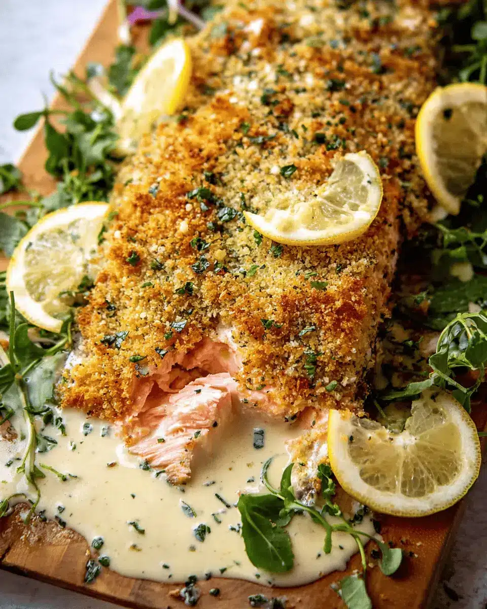 To wrap up our delightful journey through Baked Parmesan Crusted Salmon, let's reflect on its irresistible flavors and easy preparation. This dish features a golden, crunchy topping complemented by a zesty Lemon Cream Sauce. It promises not only a satisfying meal but also a feast for the eyes, perfect for impressing your dinner guests. For those craving a light yet filling dish that’s nourishing and delicious, this recipe is a must-try!