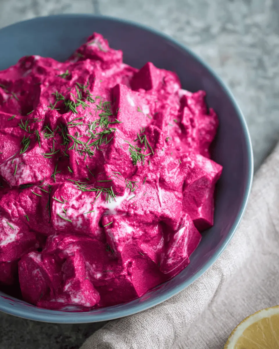 In summary, this beetroot salad dip with Greek yogurt is a vibrant, nutritious addition to your appetizer repertoire. Its creamy texture and tangy flavors make it a delightful pairing with veggies or crackers. Enjoy this dip for gatherings or a satisfying solo snack that's both healthy and delicious!