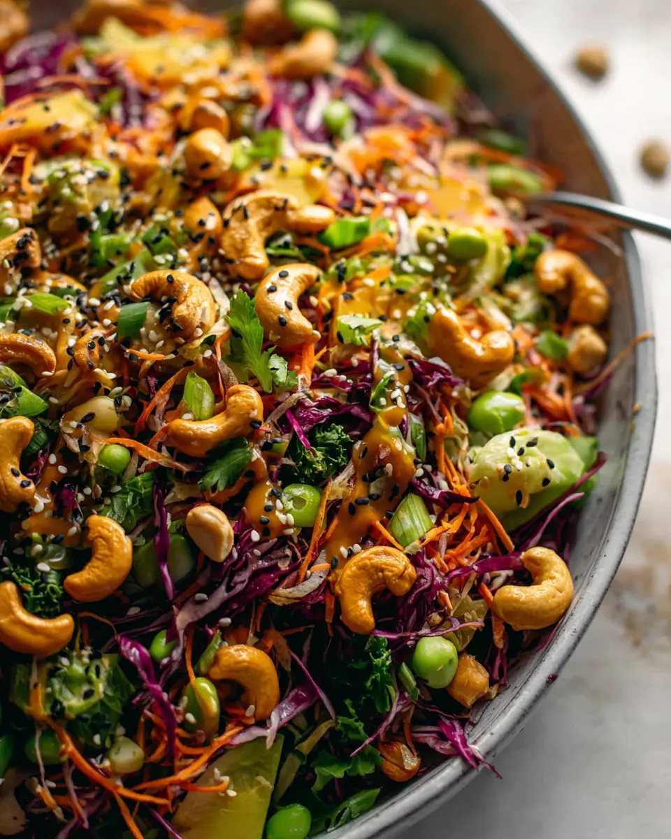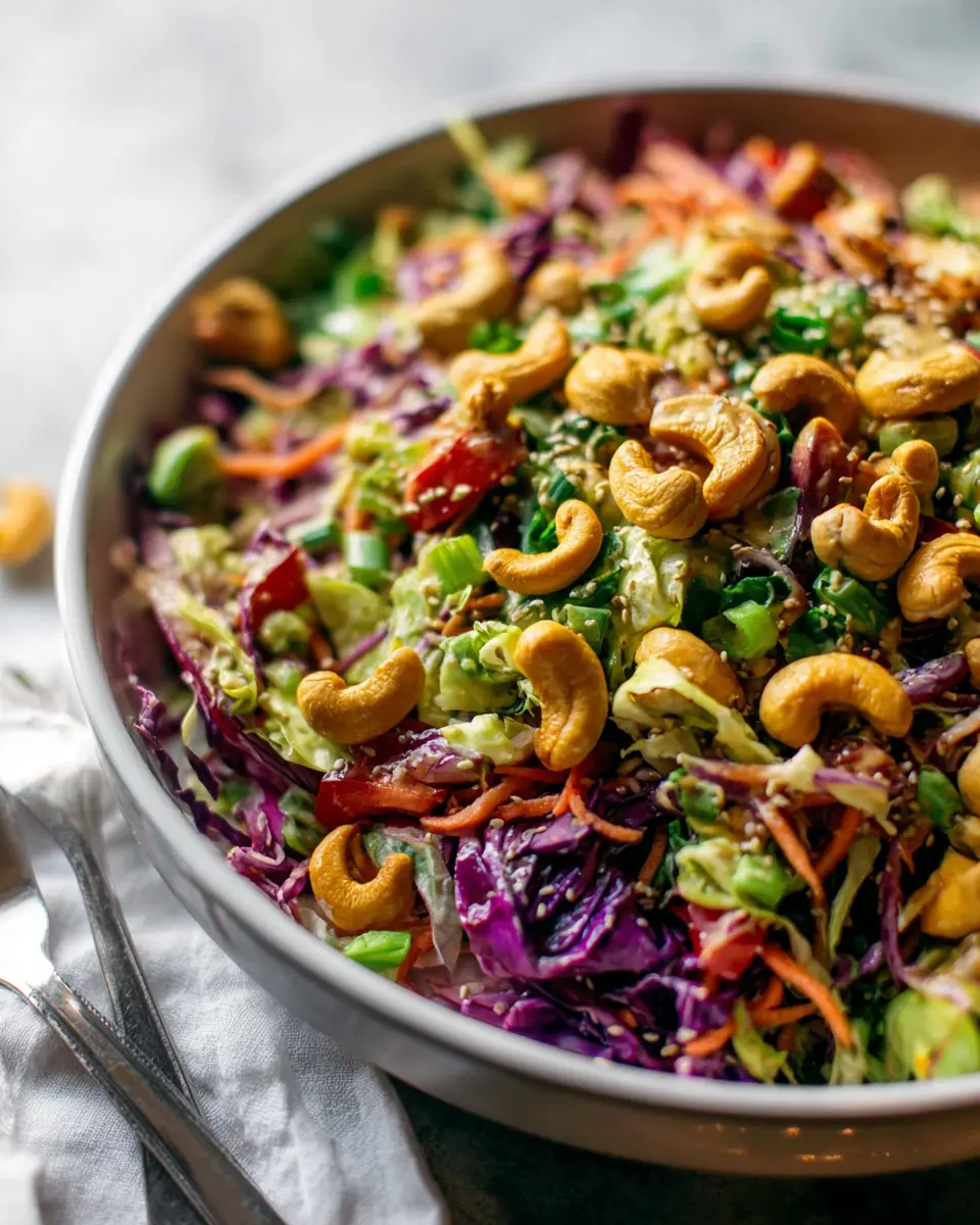 One of the best things about the cashew crunch salad is its versatility with seasonal vegetables. In the summer, toss in some juicy bell peppers or refreshing cucumbers. Come fall, consider using roasted sweet potatoes or brussels sprouts for a hearty crunch. You can align your salad with the bounty of each season and keep it new and exciting!