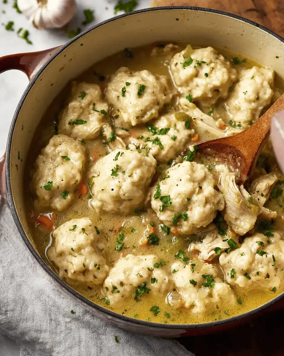 If you crave a kick, spicy chicken and dumplings is the way to go! Start by adding some diced jalapeños or a splash of hot sauce to the broth while cooking the chicken. You can also throw in spices like cayenne pepper or smoked paprika to elevate the flavor. This variation adds a bold twist to the classic recipe and can be served with a cool side of avocado salad or cilantro-lime rice to balance the heat.