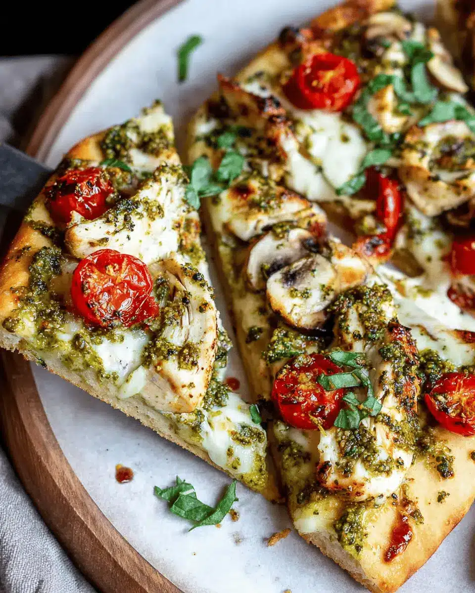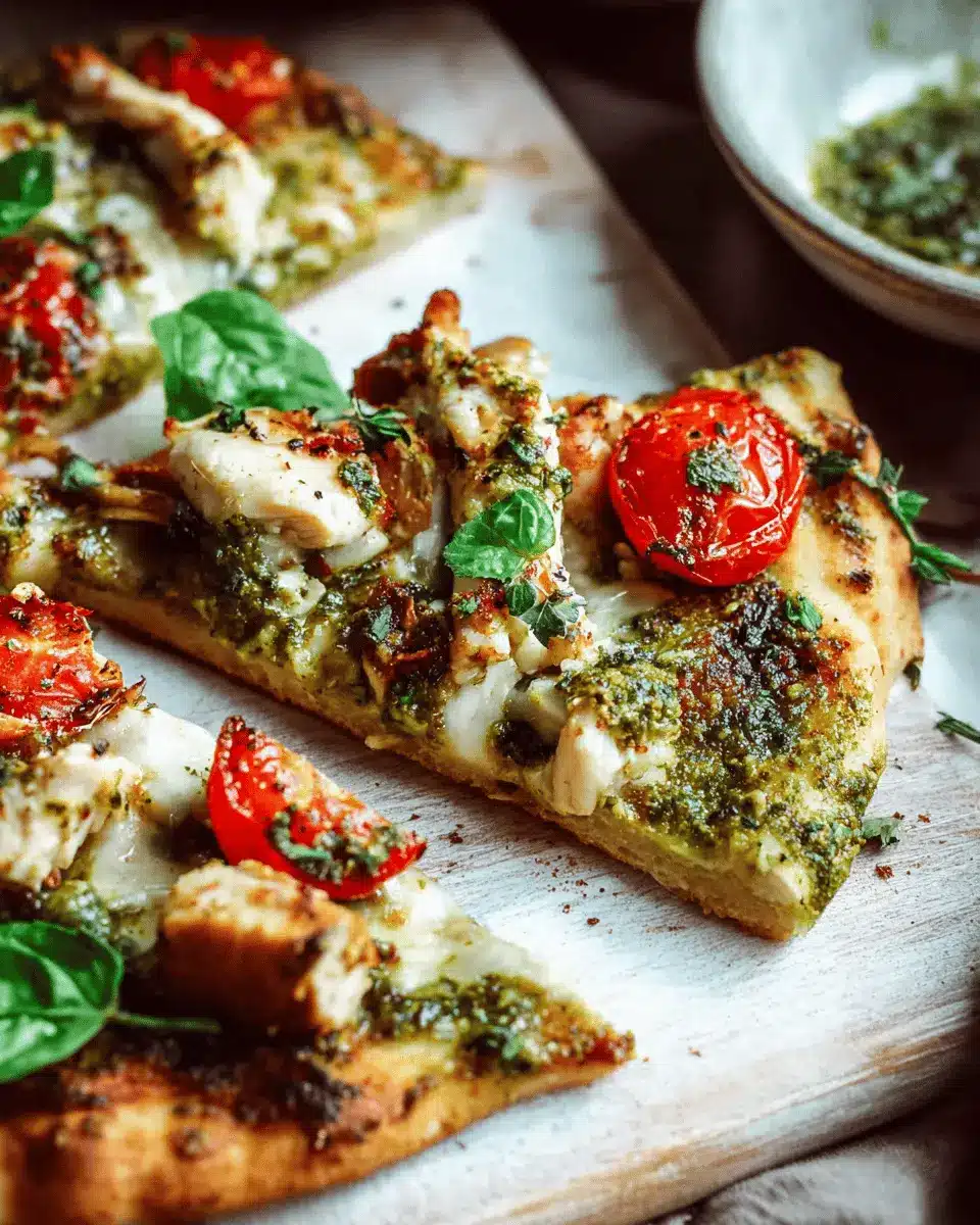 If you’re looking to switch up your chicken pesto flatbread, consider a vegetarian twist! Swap out the chicken for hearty vegetables like bell peppers, zucchini, or mushrooms. You could also layer on roasted eggplant or artichokes for a savory kick. Just remember to keep the pesto — it adds that beloved flavor we all crave!