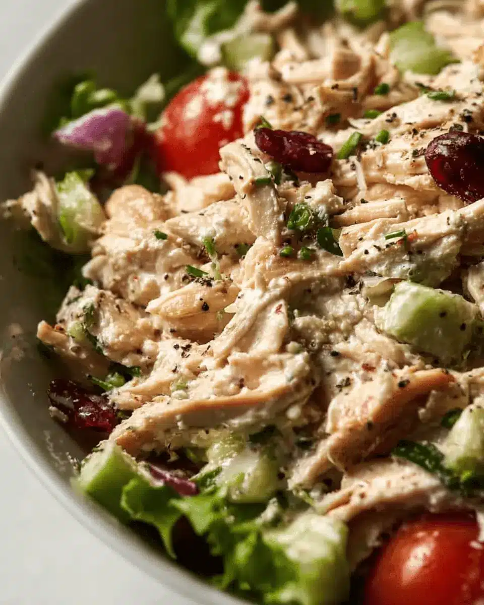 Chicken salad can be enjoyed in myriad ways! Serve it on a bed of greens for a fresh lunch, stuff it into a pita or wrap, or enjoy it on whole-grain toast for a hearty sandwich. You can even use it as a filling for stuffed avocados for a fun twist. The serving options are boundless!