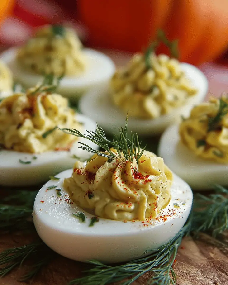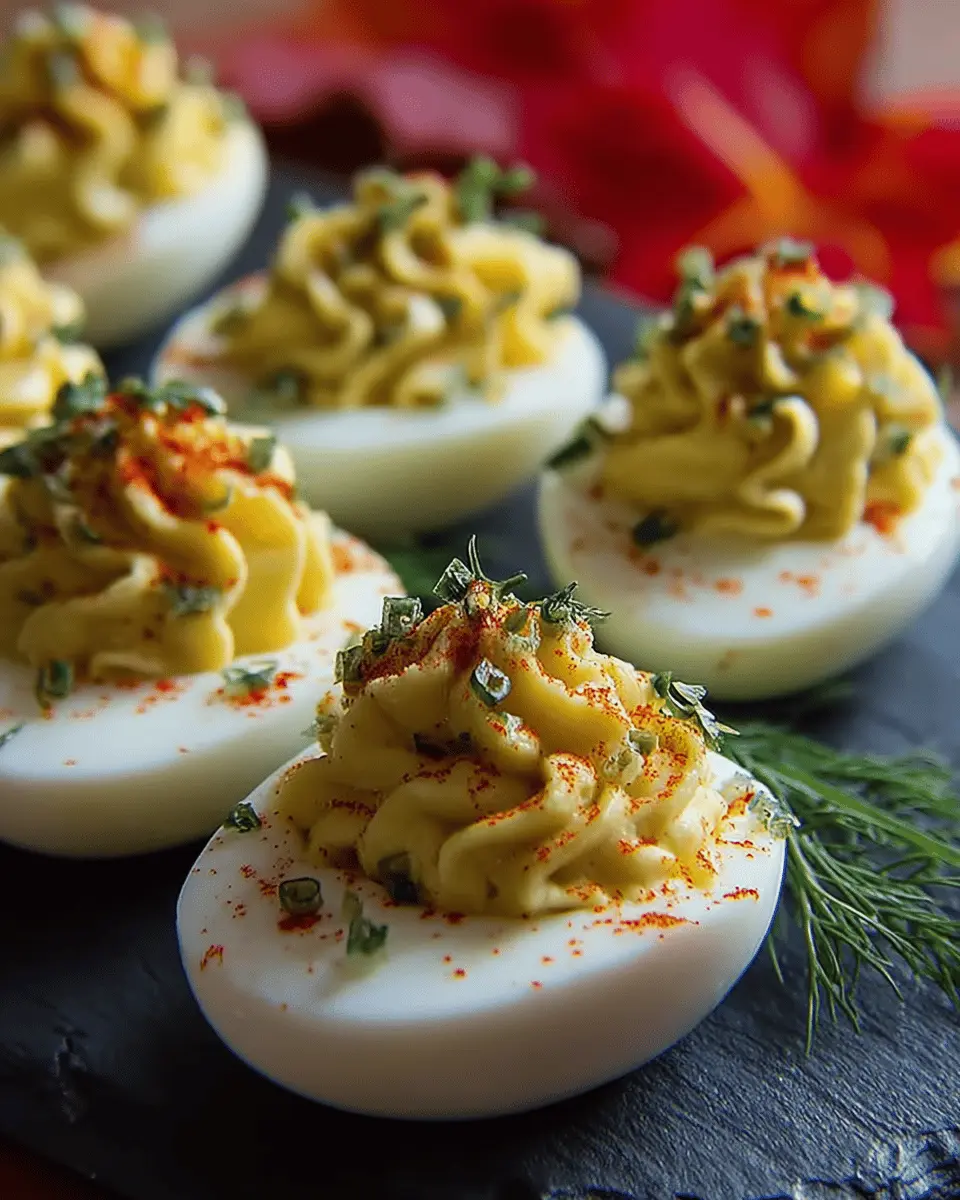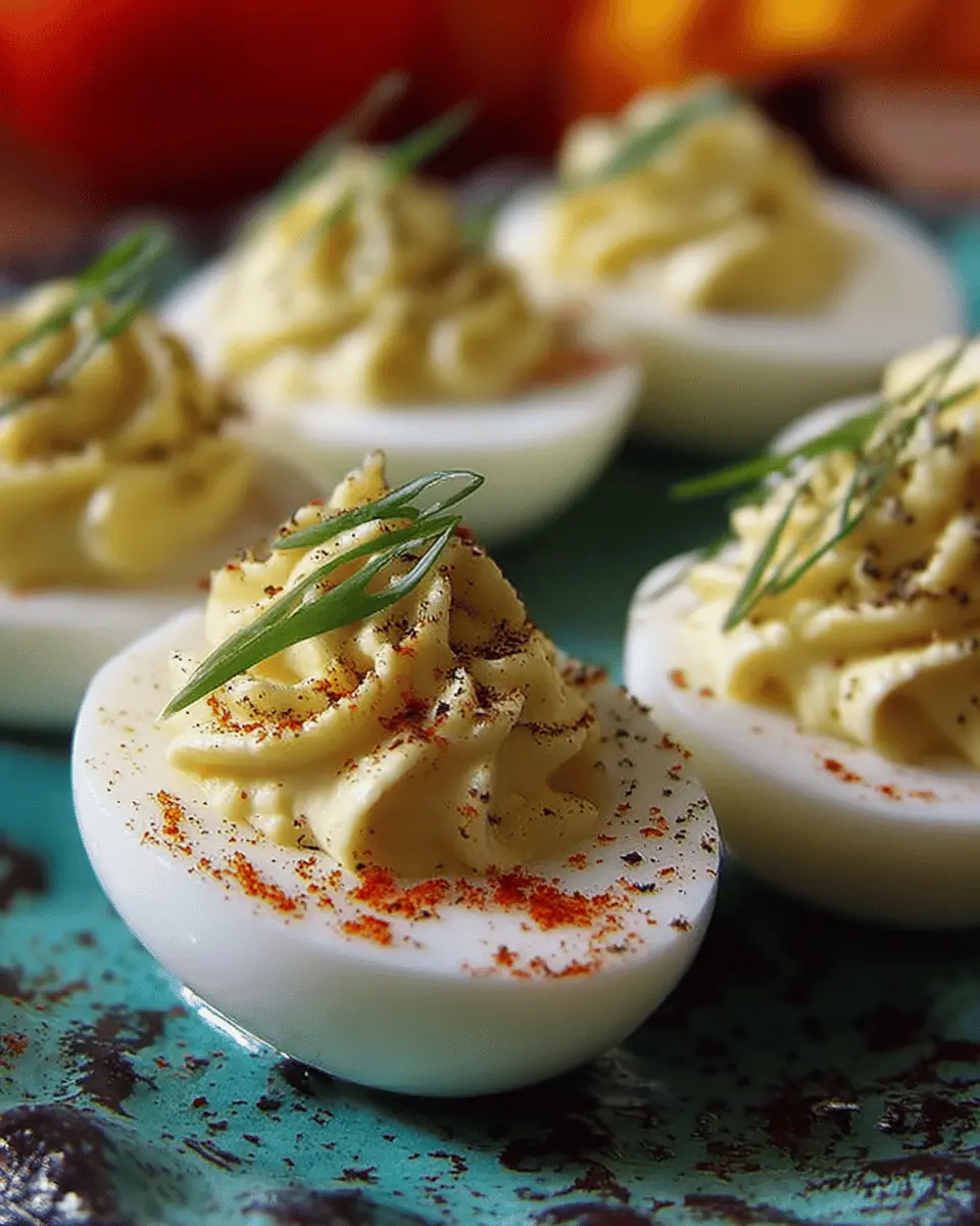 Classic Savory Deviled Eggs with Turkey Bacon and Chicken Ham