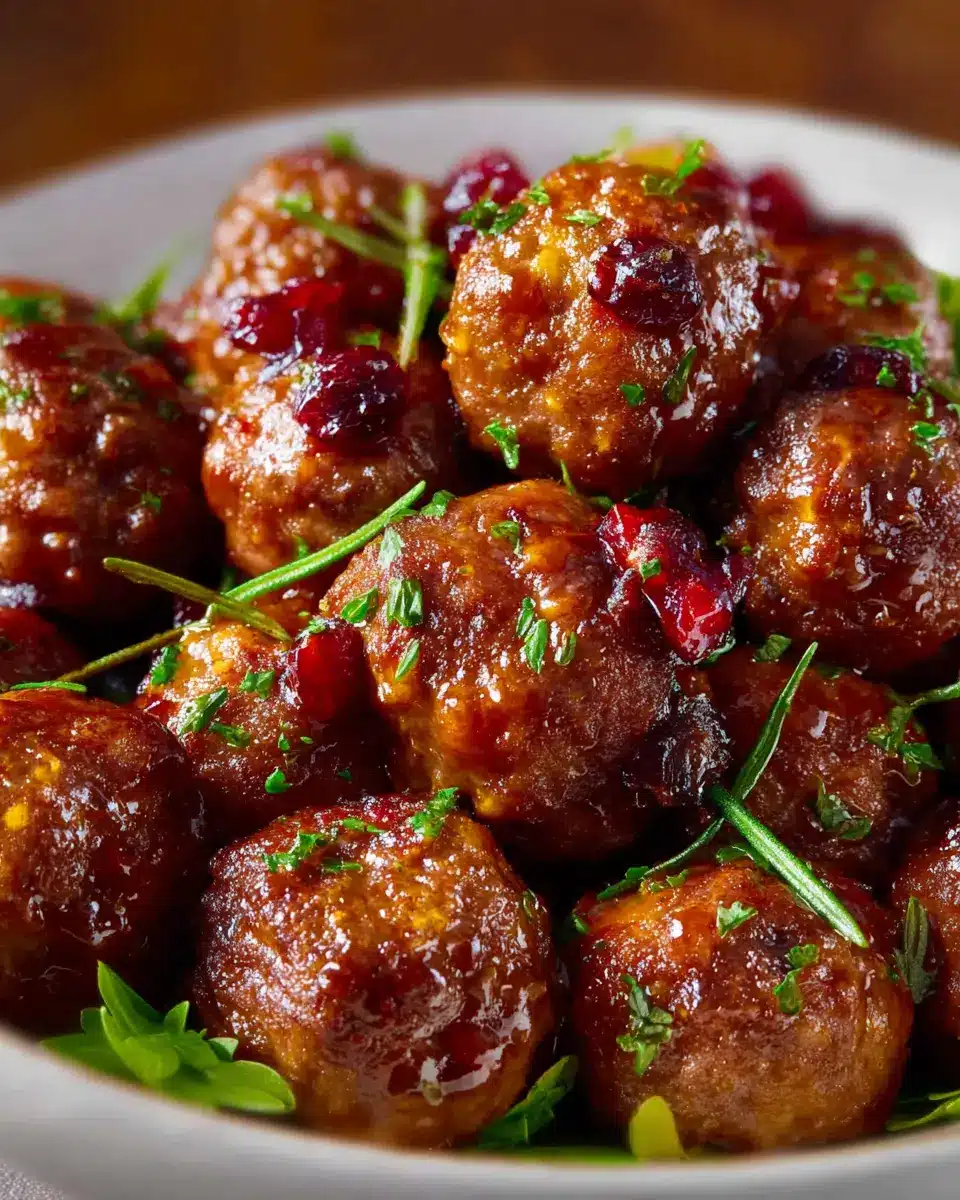 To elevate your cranberry meatballs, consider adding a sprinkle of finely chopped fresh parsley for a pop of color and freshness. If you want to add a bit of heat, a dash of red pepper flakes can do just the trick. Serve with toothpicks for easy snacking, and pair alongside some crunchy vegetable sticks or breadsticks for a delightful appetizer platter.