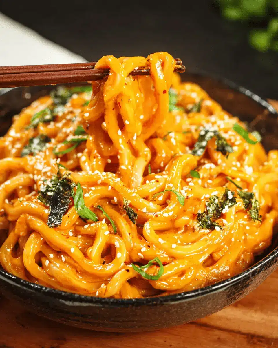 Step-by-step preparation of Creamy Gochujang Udon Noodles