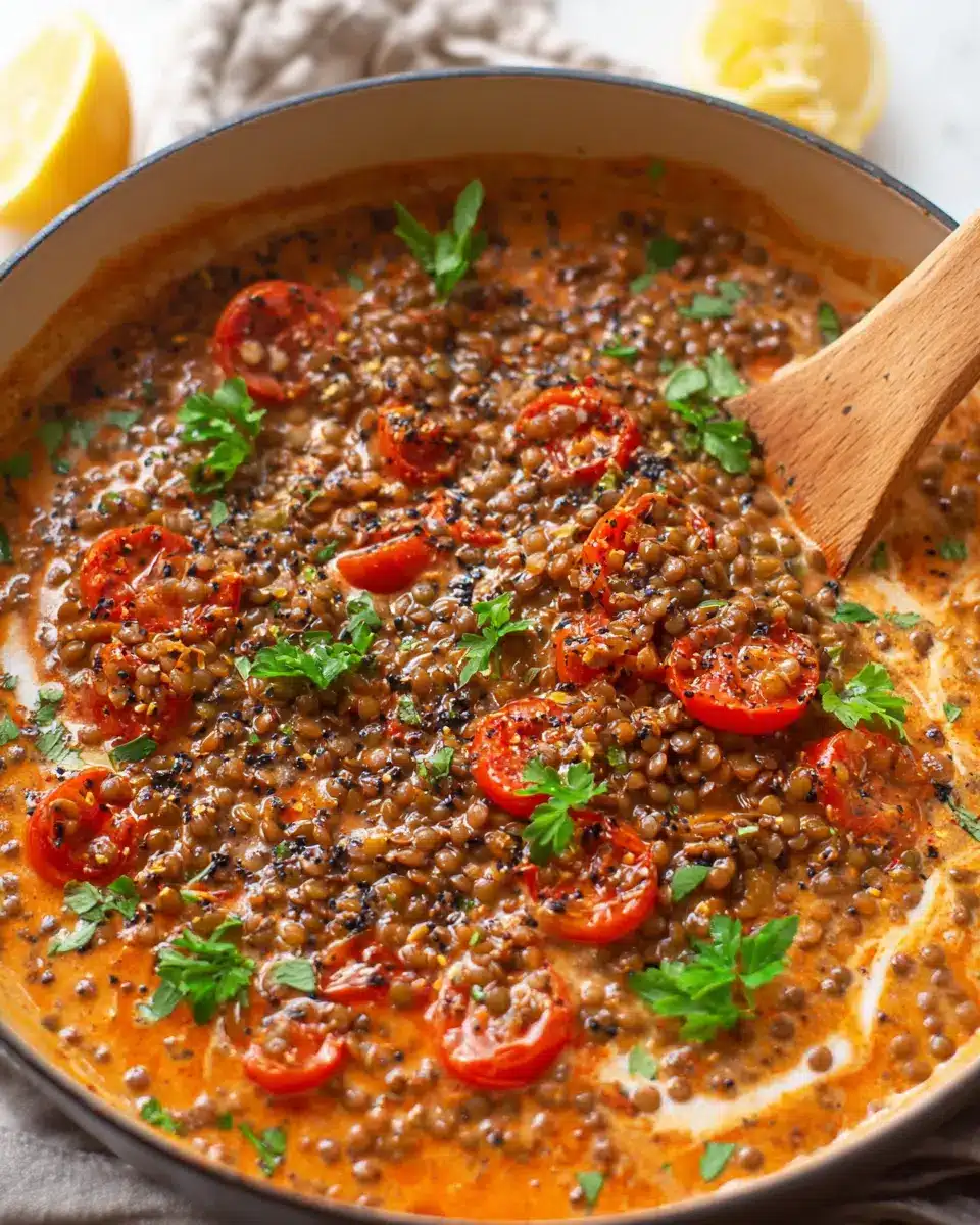 Allow the dish to rest, covered, for 5 minutes. This will help thicken things up even more. Serve your creamy “Marry Me” lentils in vibrant bowls, alongside lemon wedges for that perfect finishing touch. Just a squeeze of lemon elevates the dish with brightness that complements the rich flavors.