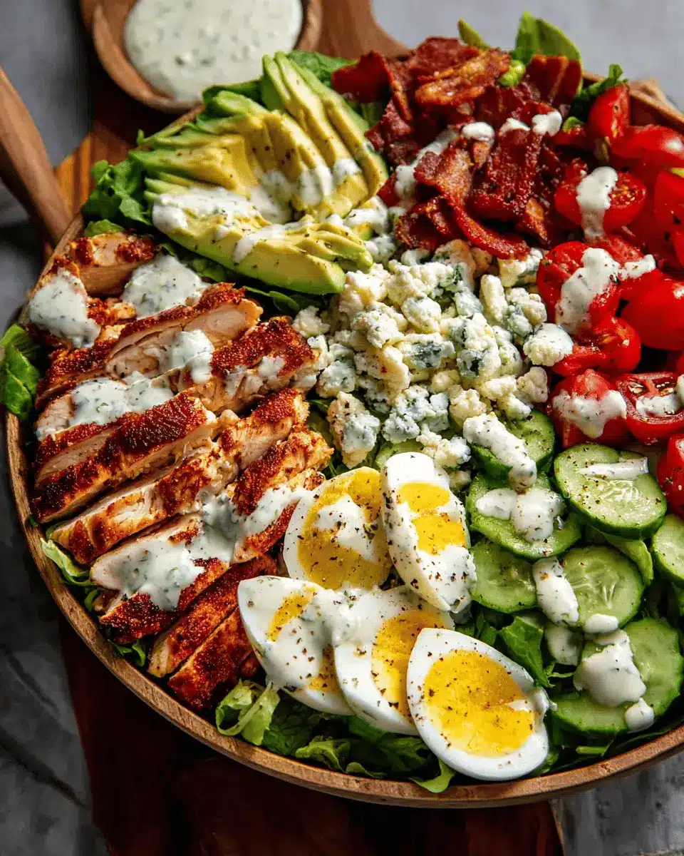 Drizzle your Garlic Ranch dressing over the salad just before serving, or serve it on the side for dipping—whatever fits your style! Toss it lightly if you like to coat everything in that deliciously creamy dressing. Enjoy your Crispy Chicken Cobb Salad, knowing that you’ve created something delightful, fresh, and oh-so-satisfying!