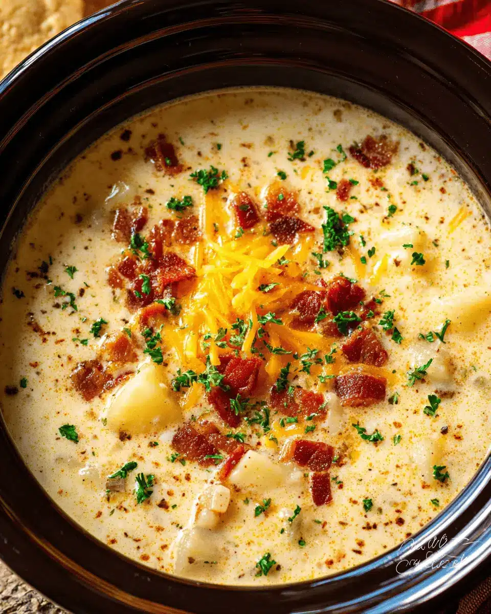 Garnishing your Crock Pot Potato Soup can elevate its presentation and taste! Consider topping it with: