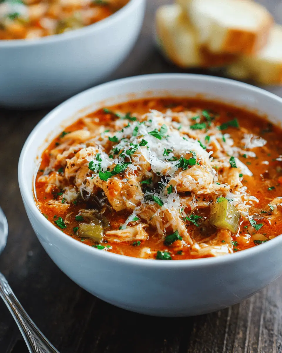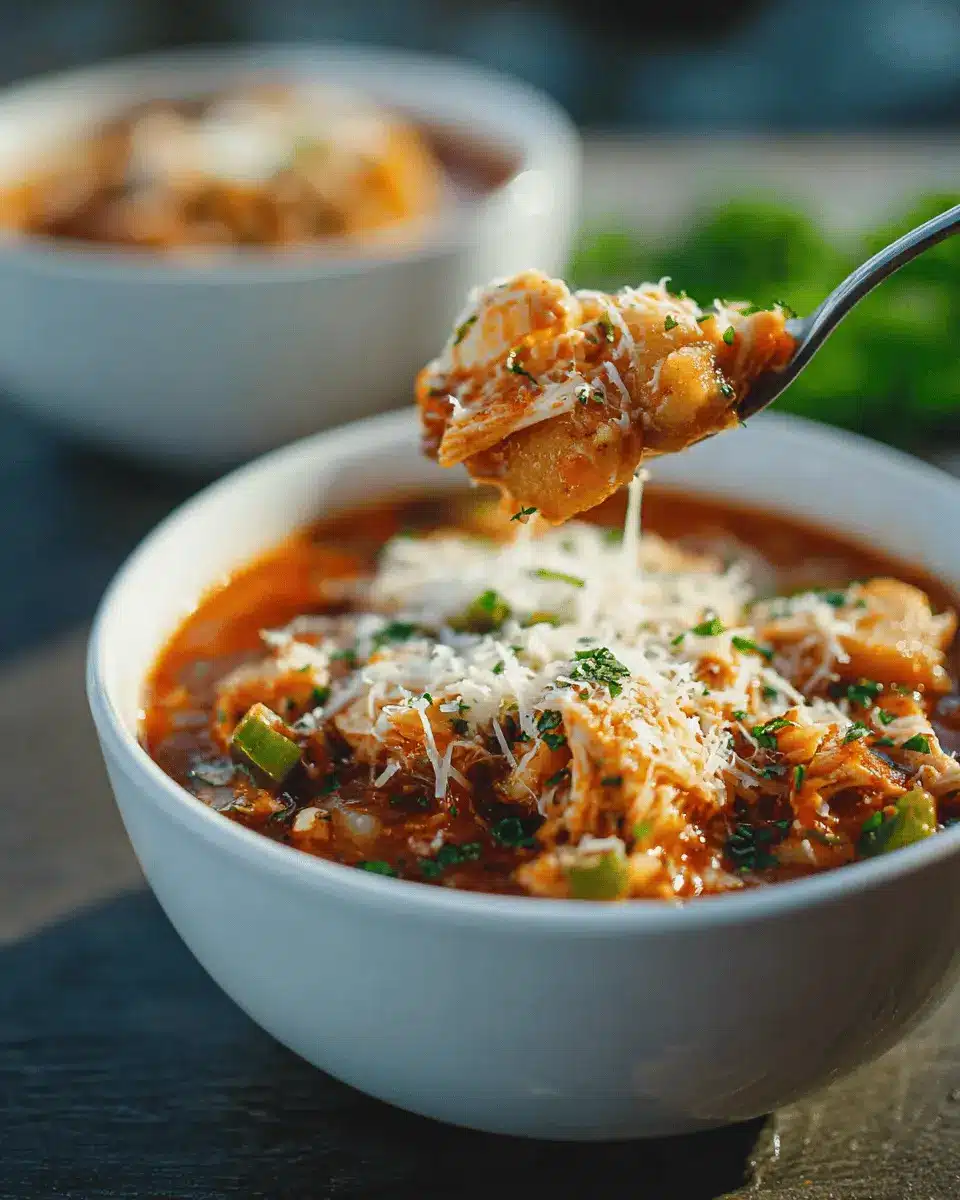 If you prefer a milder Crockpot Chicken Parmesan Soup, simply reduce the amount of red pepper flakes or omit them entirely. For those who enjoy a bit more heat, consider adding sliced jalapeños or a few dashes of hot sauce. Remember, you can always taste and adjust the spice level as you go!