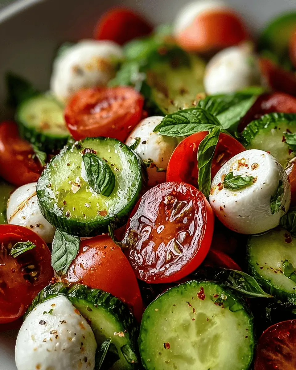 In summary, Cucumber Caprese Salad is a delightful, vibrant dish that perfectly balances fresh ingredients and easy preparation. Ideal for warm days or as a light side, it invites creativity with endless variations. Embrace its flavors, share with friends, and enjoy the zest it brings to any meal!