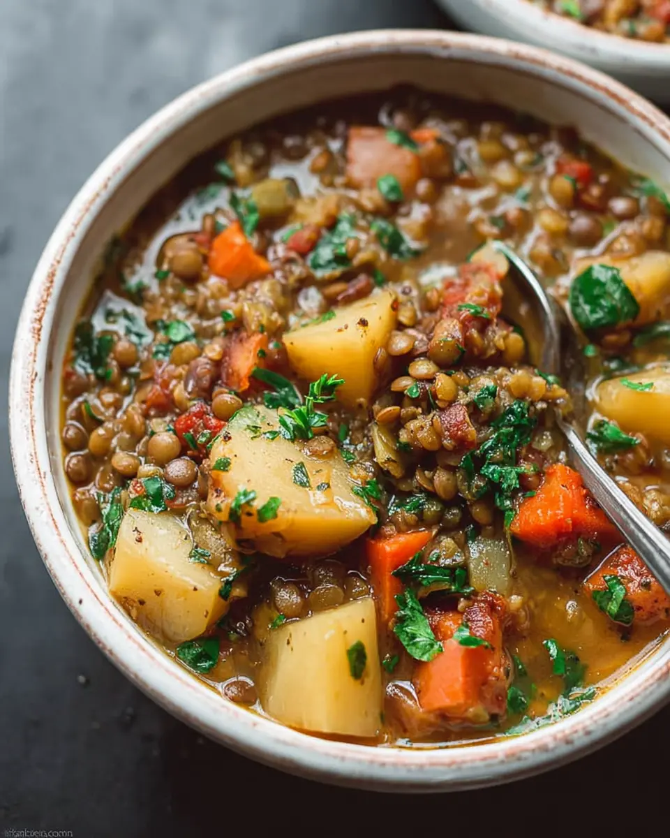In summary, this easy lentil potato soup recipe is not only comforting but also packed with nutrition. Perfect for weeknight dinners or meal prep, it offers versatility for your tastebuds. Feel free to experiment with spices and toppings that suit your palate, making each bowl uniquely yours! Enjoy!