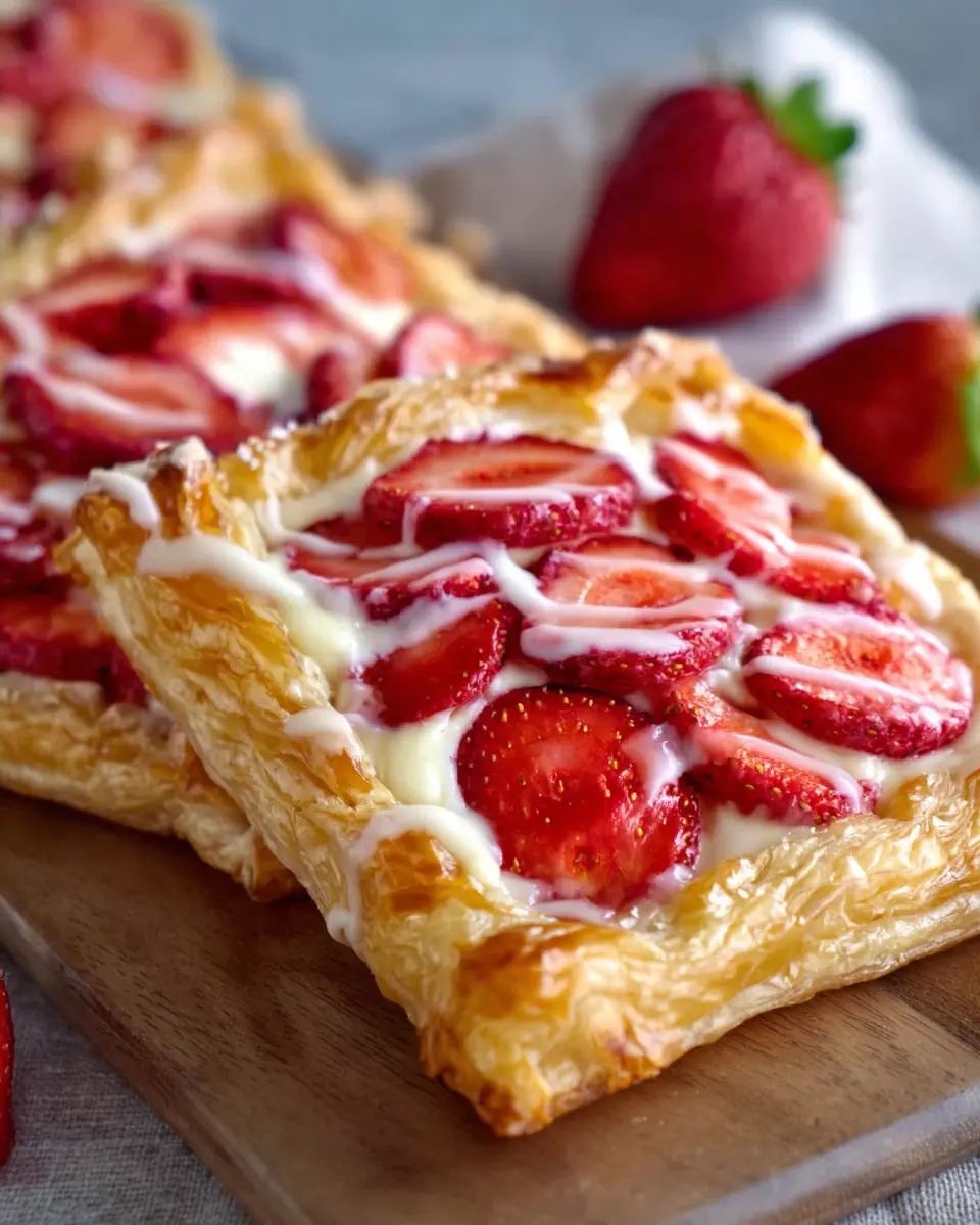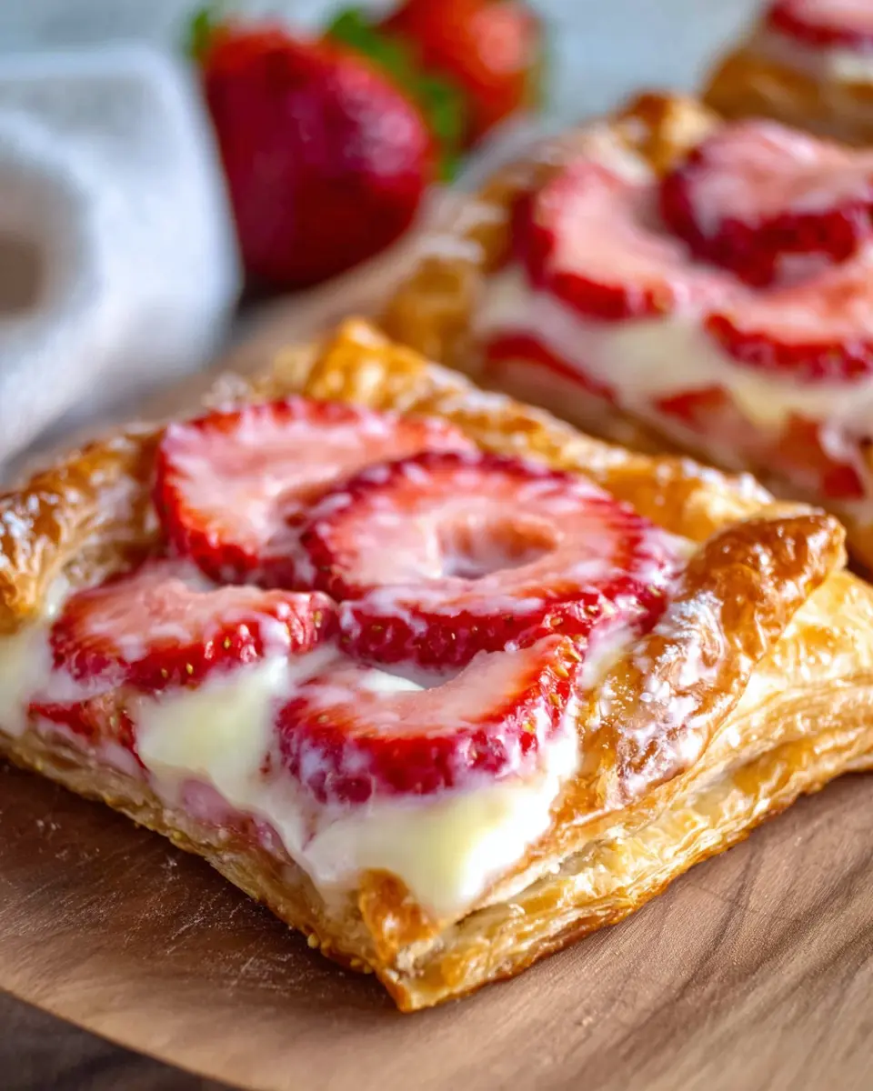 Absolutely! Using frozen strawberries is a convenient option when fresh ones aren’t available. Just remember to thaw and drain them before mixing with cornstarch and sugar to avoid excess moisture in your easy strawberry cream cheese danish. This will help maintain that delightful flaky texture of the puff pastry.