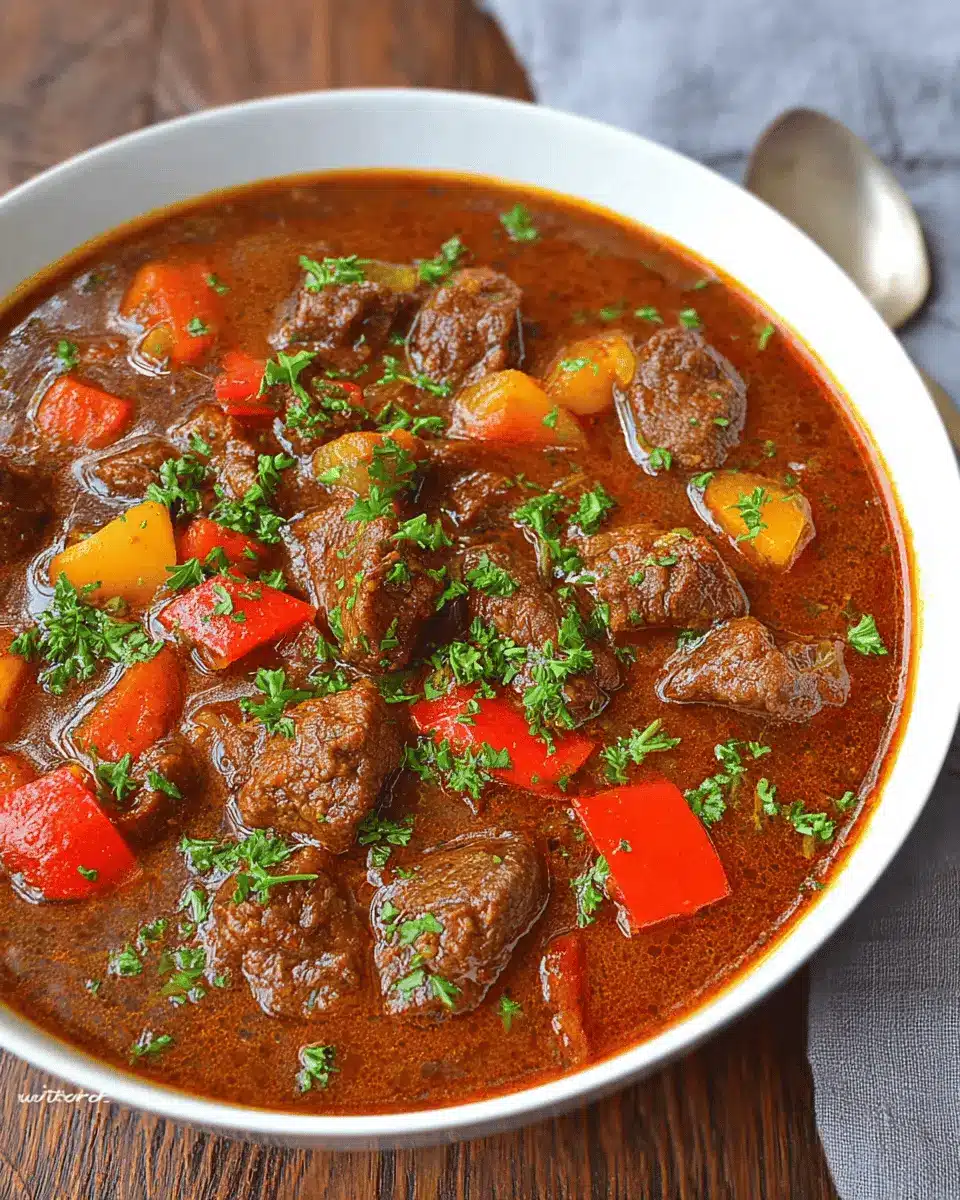 Imagine coming home after a long day, and the comforting aroma of slow-cooked beef mixed with the sweetness of bell peppers greets you. That’s what homemade German Goulash delivers—comfort food at its finest. The slow-simmering process allows the flavors to meld beautifully, meaning you can meal prep this in advance and enjoy leftovers packed with taste for days.