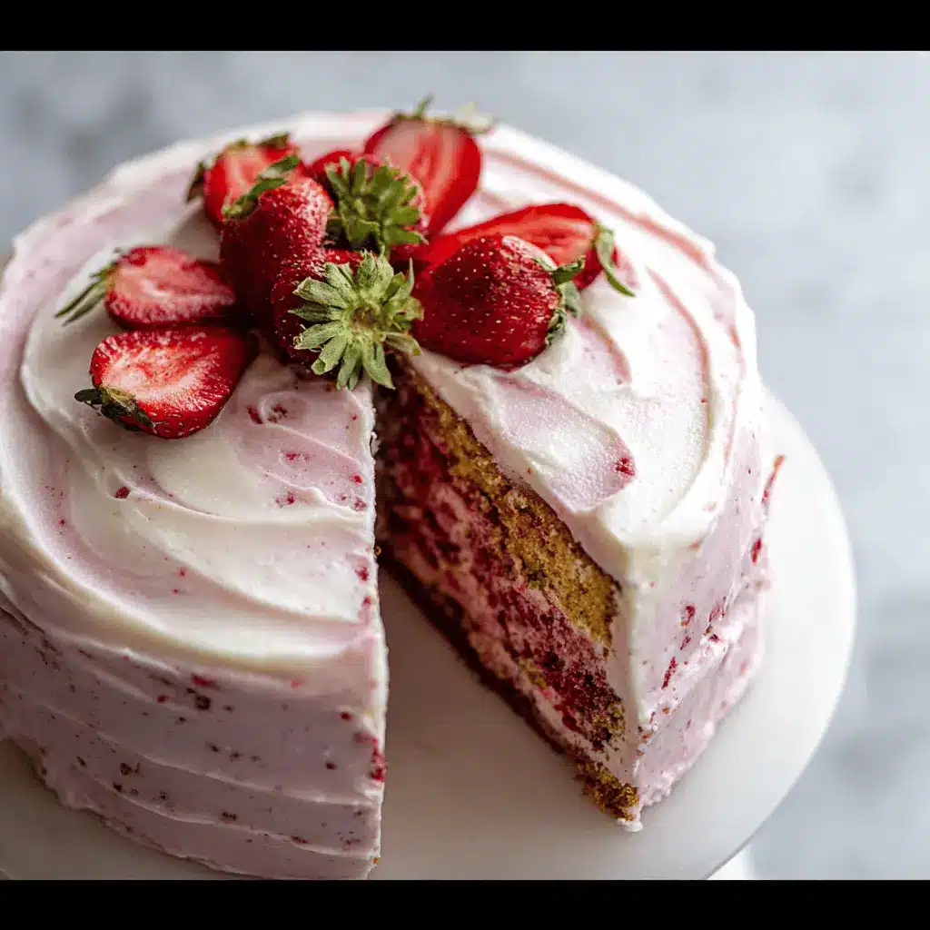 - Layering: Spread extra frosting between layers and on top, garnished with additional freeze-dried strawberries for a charming touch.