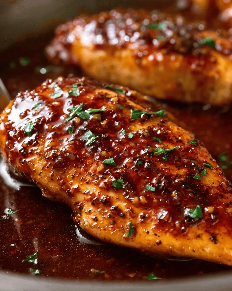 Finally, return your golden chicken breasts to the skillet and turn them to coat in your luscious sauce. If you notice the sauce thickening too much, don't hesitate to add a touch of water to loosen it up. As you remove the skillet from heat, envision the lovely, sticky glaze covering your chicken, preparing to be plated. Serve the chicken on your favorite dish and drizzle with any remaining sauce for extra flavor.