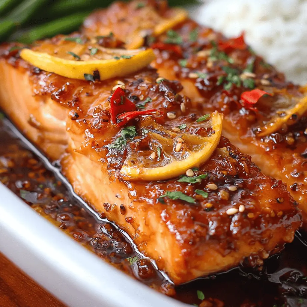 Finally, it’s time to plate your Honey-Garlic Glazed Salmon. Transfer the beautifully glazed fillets to a serving dish and drizzle any remaining sauce over the top for that extra oomph! Garnish with the lemon slices for a zesty burst. This dish pairs wonderfully with steamed vegetables, a light salad, or over a fluffy bed of rice.