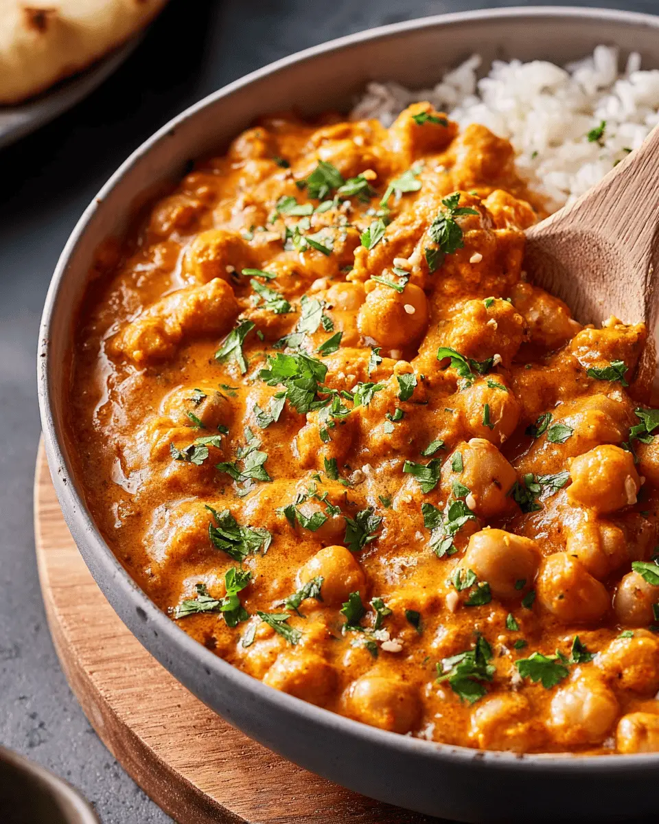When enjoying your Indian Butter Chickpeas, consider pairing them with fluffy jasmine rice or warm, pillowy naan for the ultimate comfort food experience. The creamy sauce complements the rice beautifully, soaking in the flavors. If you're feeling adventurous, try serving it with basmati rice for a fragrant twist, or even opt for a variant like garlic naan to enhance the dish.