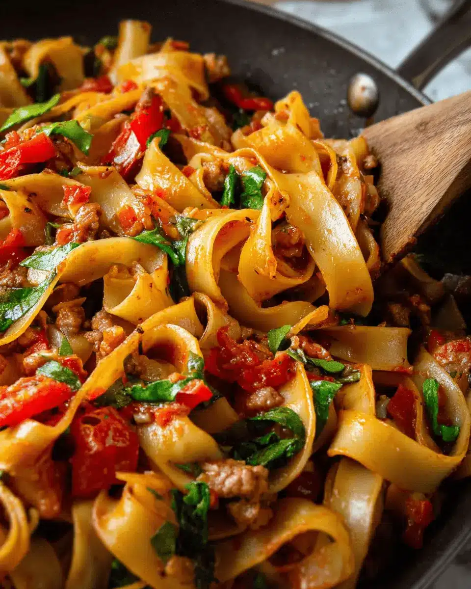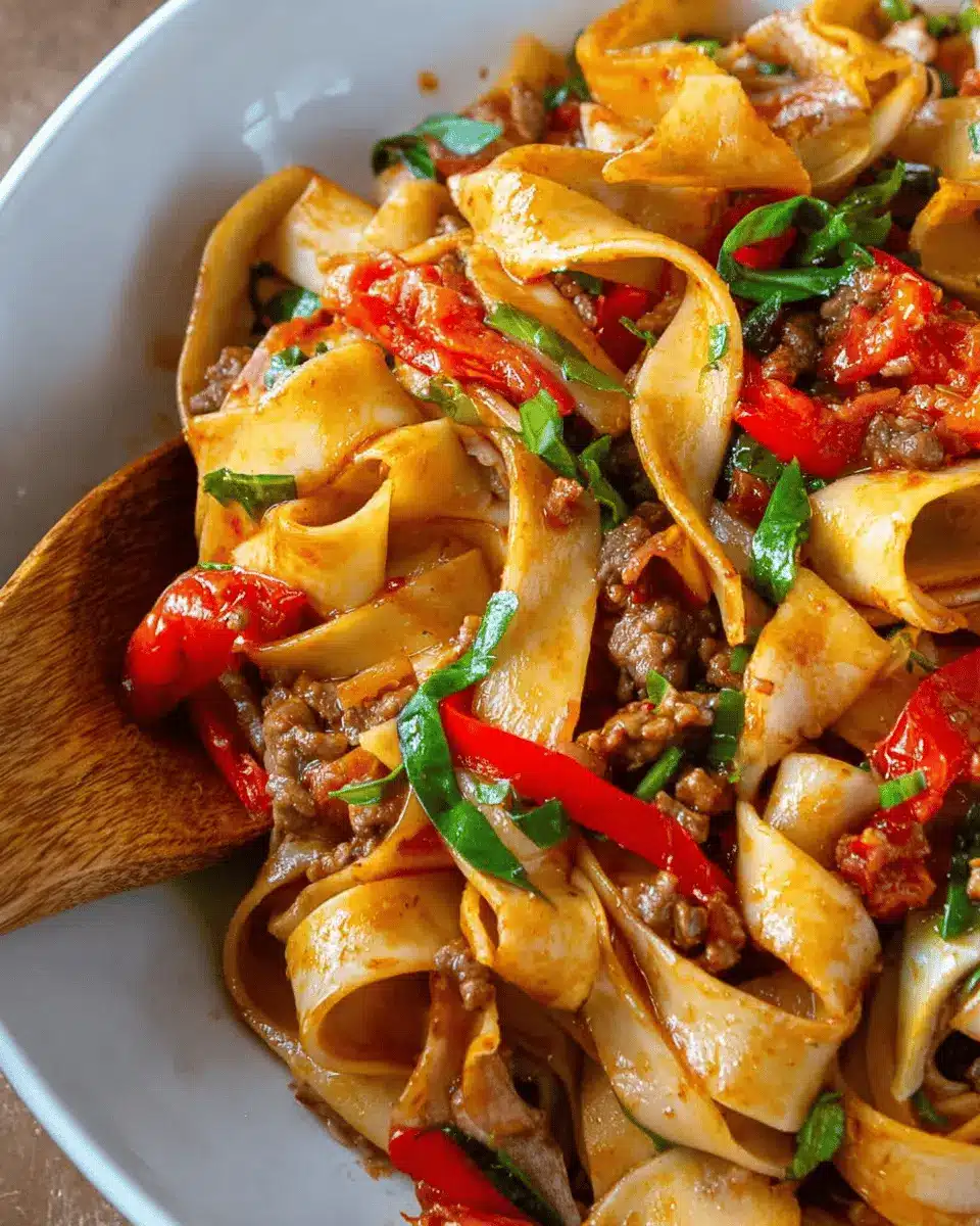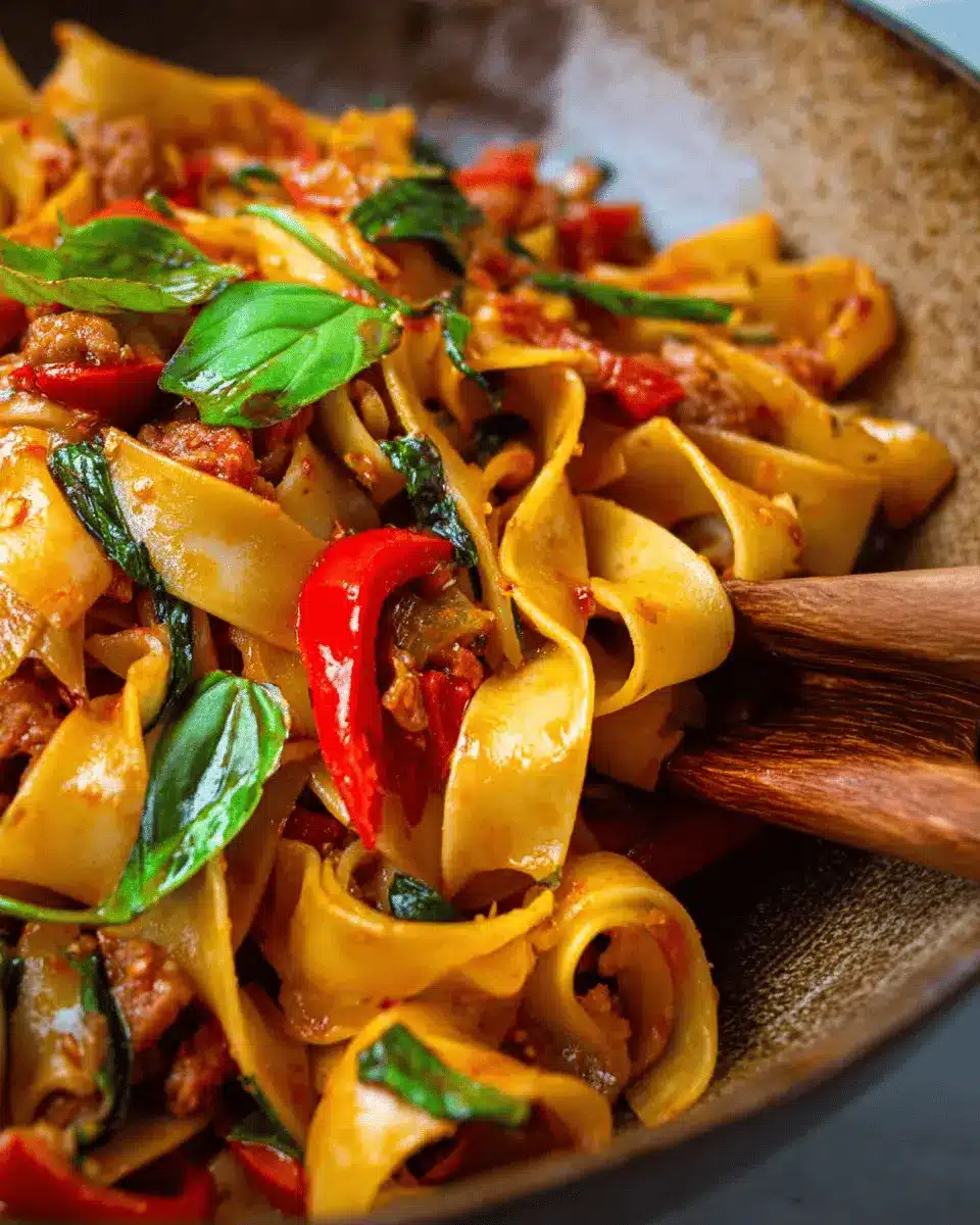 Making Italian Drunken Noodles with pappardelle is a delightful adventure. The combination of spicy sausage, vibrant bell peppers, and rich crushed tomatoes creates a beautifully balanced dish that can impress anyone at your dinner table. Let's walk through the steps together!