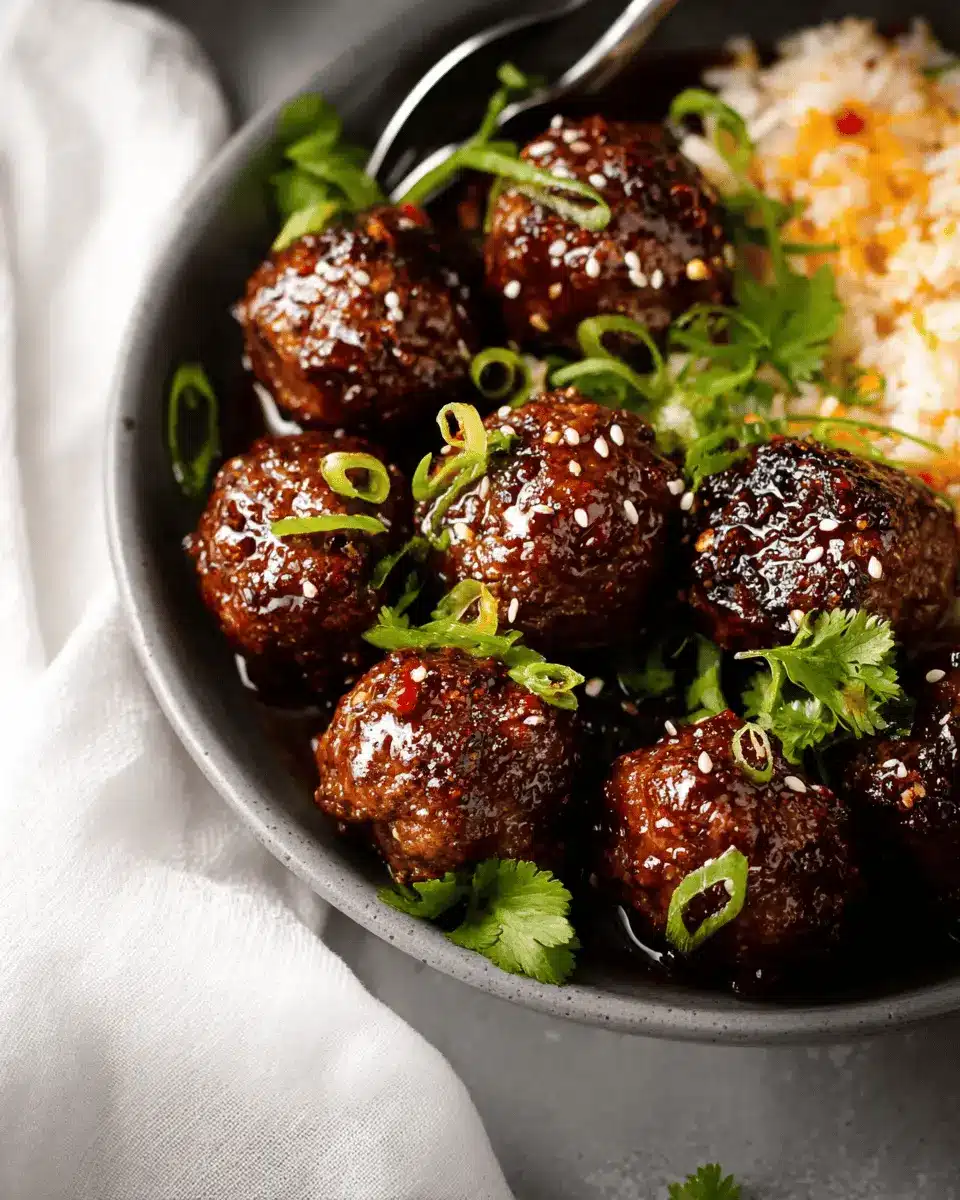 If you crave heat, simply amp up the gochujang by adding an extra tablespoon or two to your meatball mixture and glaze. You can also sprinkle some Korean red pepper flakes over the finished dish for an extra kick! These spicy Korean BBQ meatballs are perfect for those who enjoy a bold flavor profile. Pair with a cool cucumber salad for a refreshing contrast.