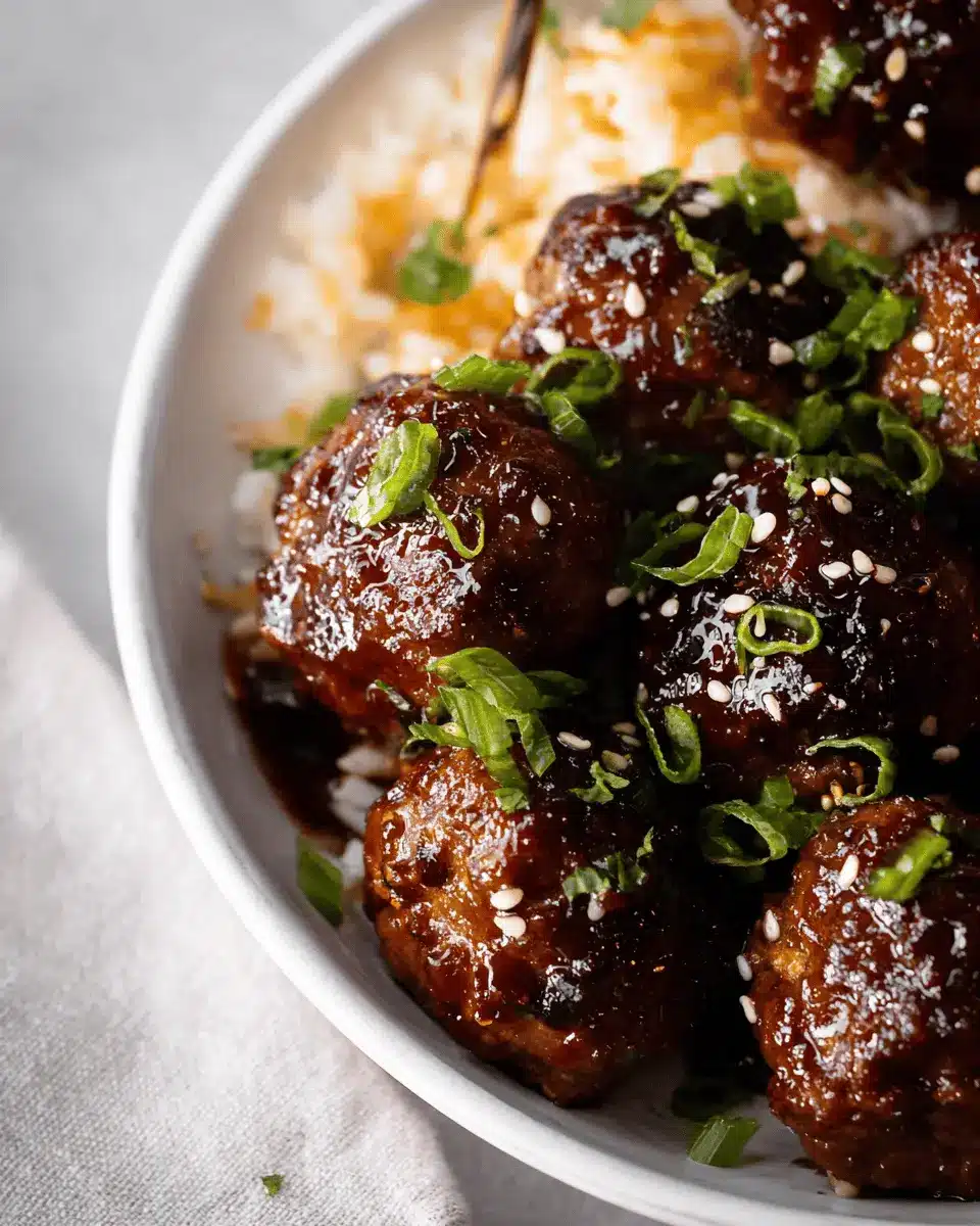 Imagine sinking your teeth into juicy, tender meatballs infused with the umami-rich flavors of gochujang and sesame. Not only do they pack a flavor punch, but they also offer a wonderful blend of textures, thanks to ingredients like panko bread crumbs and fresh green onions. Plus, the glossy, sweet-spicy glaze draped over these meatballs elevates them from basic to mouthwatering.