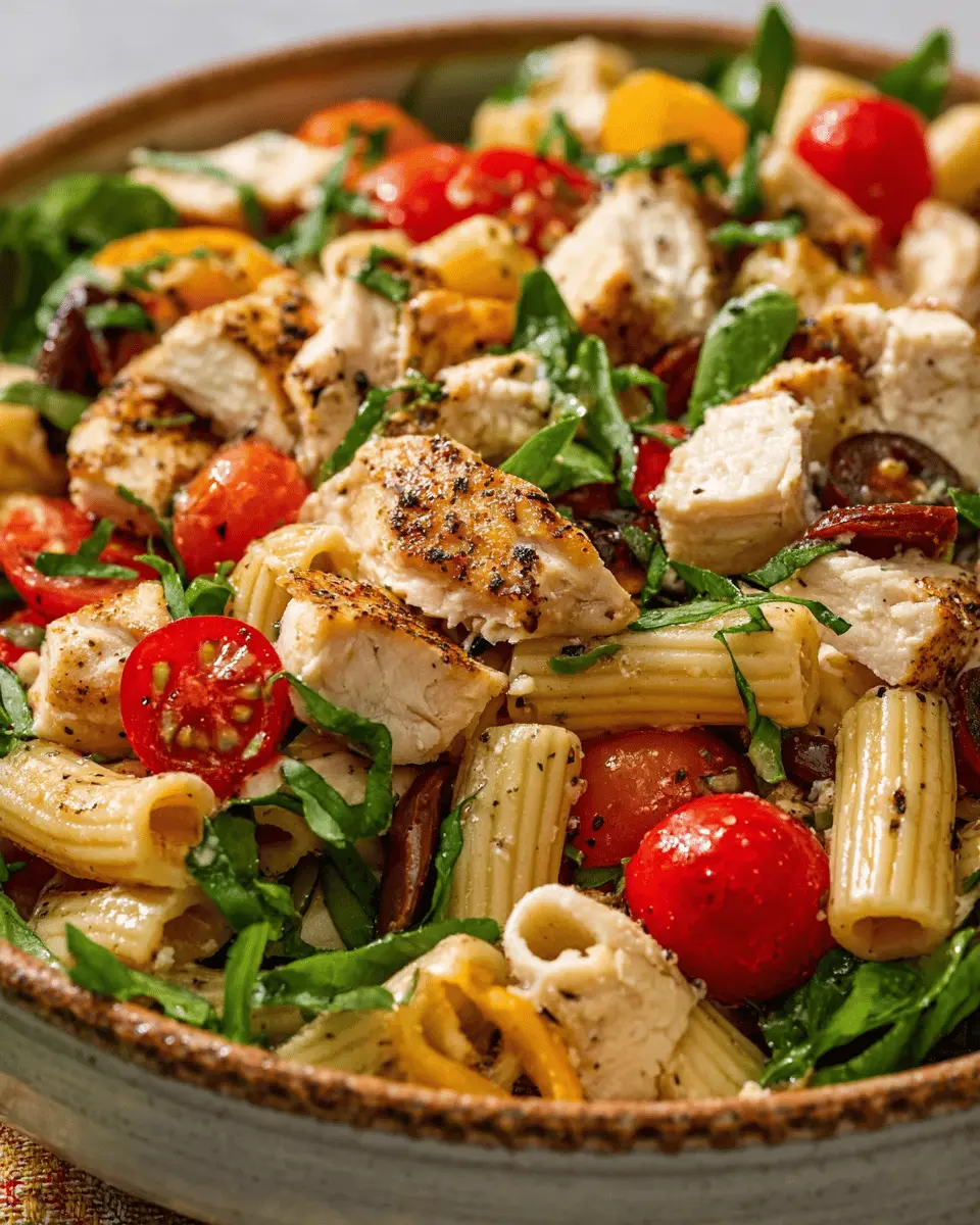 Imagine coming home after a long day, opening your fridge, and finding a colorful bowl of Mediterranean goodness waiting for you. With ingredients like juicy chicken, crunchy veggies, and a zesty vinaigrette, this salad isn’t just delicious; it’s a feast for the senses. Plus, it’s incredibly versatile. Feel free to mix in your favorite seasonal vegetables or substitute with your preferred pasta.