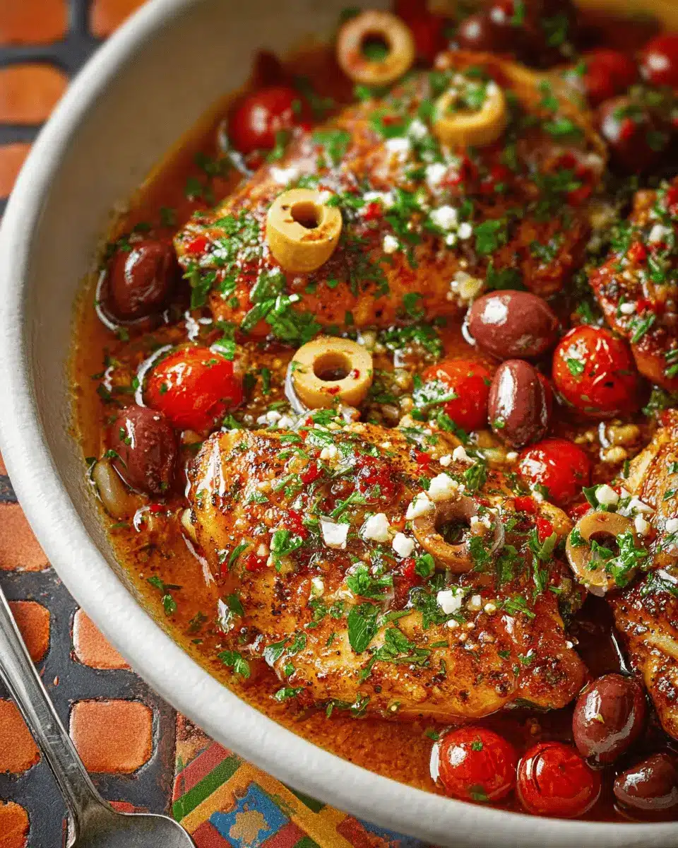 In summary, Mediterranean Chicken with Tomatoes and Olives is a delightful, vibrant dish perfect for weeknight dinners or meal prep. Bursting with flavor from the garlic, olives, and fresh herbs, it offers a taste of the Mediterranean right in your kitchen! Enjoy its simplicity and versatility—your taste buds will thank you!