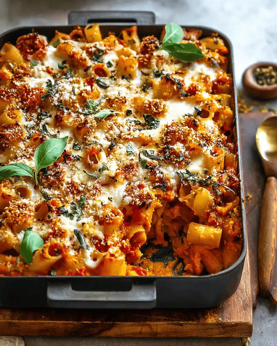 And voila! You’ll soon have a Pasta Bake with Pumpkin Tomato Sauce that’s gooey, flavorful, and utterly satisfying. Don’t forget to let it rest a few minutes before serving—this will help with serving and allow those incredible flavors to settle. Enjoy your cooking adventure!