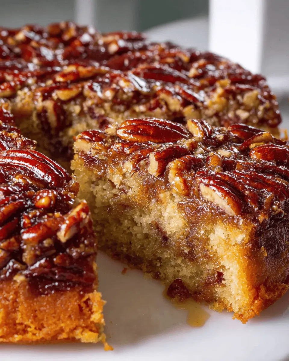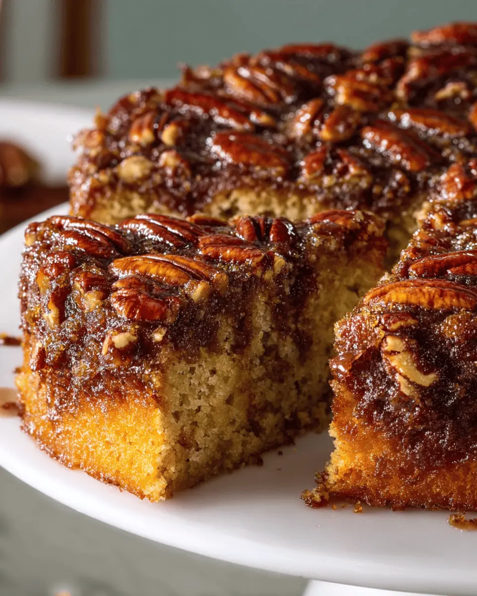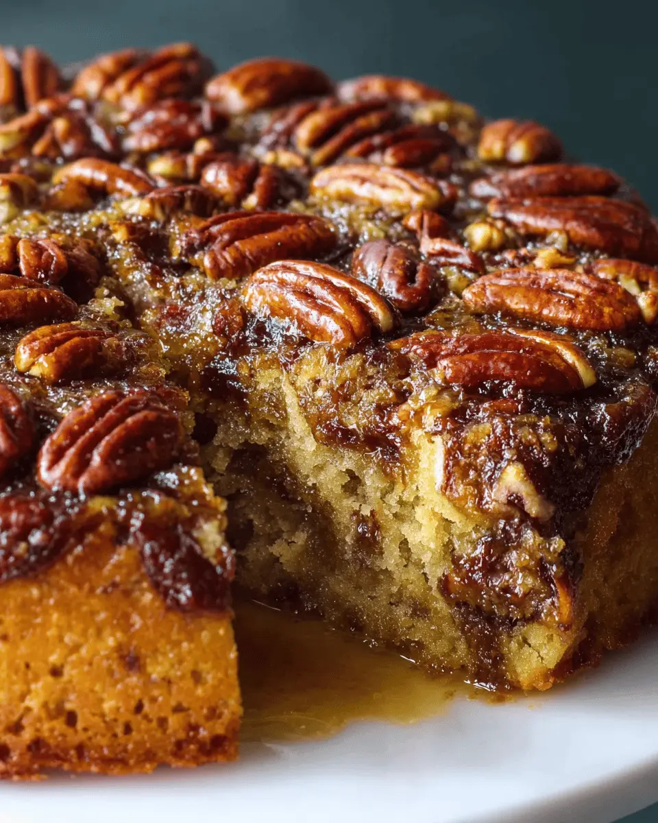 What sets this cake apart is the fabulous combination of nutty flavors and textures. The pecans not only provide a delightful crunch but also soak in the caramel goodness from the brown sugar and butter, creating a symphony of flavors in every bite. Pair it with a scoop of vanilla ice cream or enjoy it plain—either way, you'll have friends and family coming back for seconds.