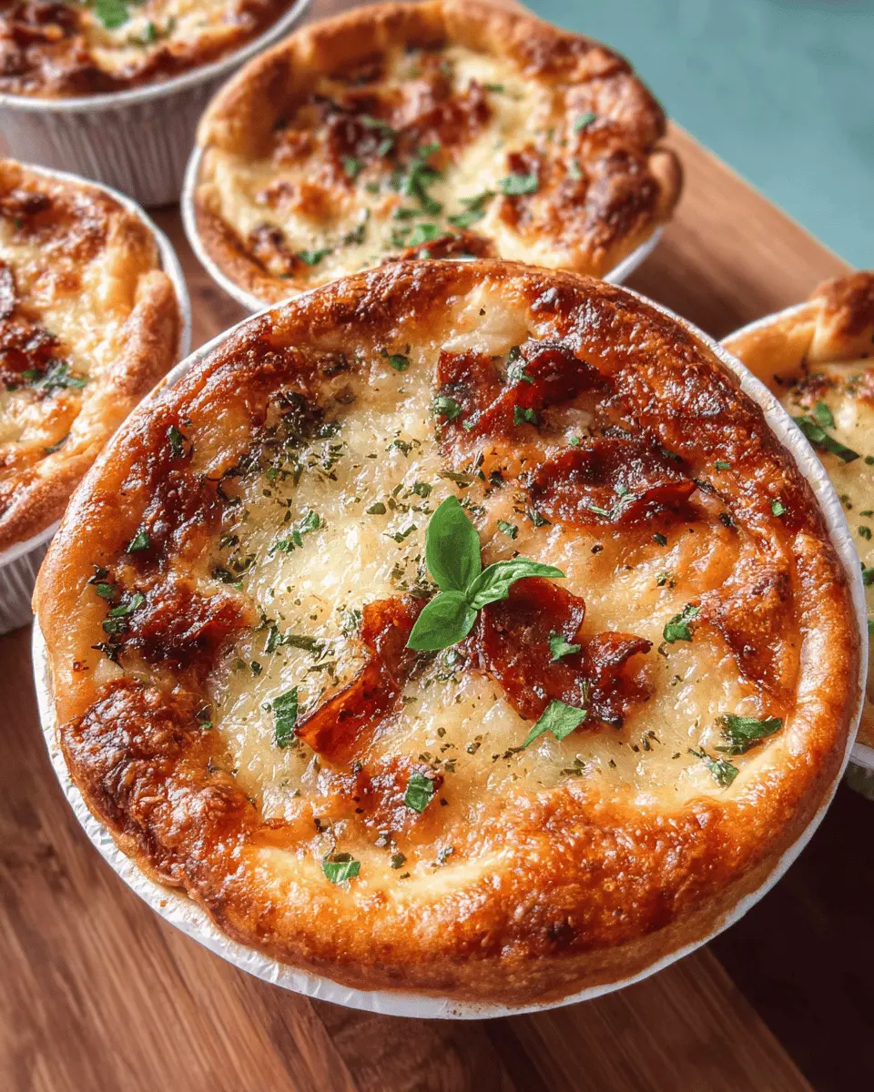 When it comes to serving pizza pot pies, presentation is key! Consider using a rustic wooden board for a cozy look, or opt for colorful plates that pop against the golden crust. You can even garnish the tops of the pot pies with a sprinkle of fresh basil or parsley for an extra touch. For a fun twist, serve individual pizza pot pies in their muffin tins for a casual, nostalgic vibe. Want to impress your guests further? Pair them with a side of homemade marinara for dipping!