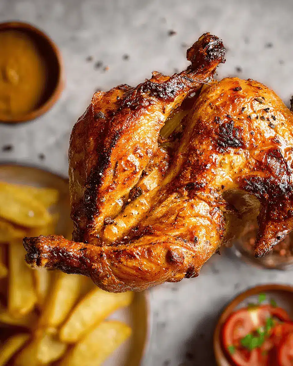 In summary, pollo a la brasa is not just a dish; it’s an experience! With its rich flavors and crispy skin, it’s the perfect meal for gatherings or a cozy dinner. Enjoy it with some crispy fries and homemade ají for an authentic taste of Peru.