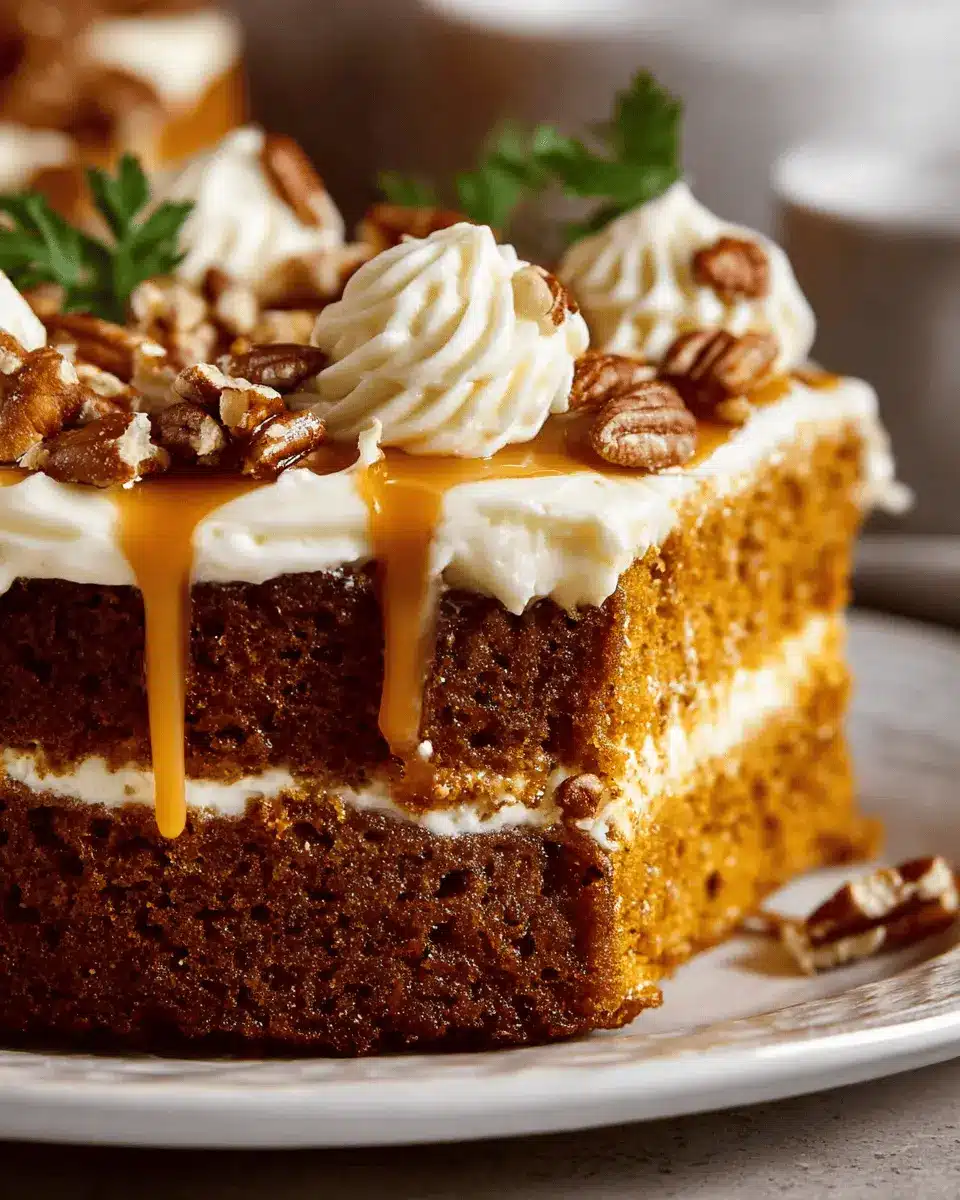 If you love a little crunch in your dessert, consider adding chopped walnuts or pecans to your pumpkin cake batter. Not only do they bring delightful texture, but they also enhance the warm, earthy flavors of the pumpkin. Just fold in about a cup of nuts before baking for an extra layer of flavor and richness. For a fun twist, also try sprinkling some over the top before serving for that irresistible nutty finish.
