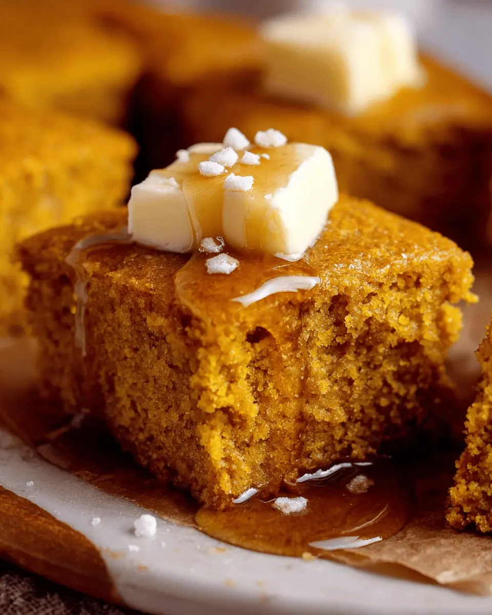 If you’re thinking of serving Pumpkin Cornbread for brunch, try it with a spread of assorted jams, turkey bacon, or scrambled eggs. The sweetness of the cornbread pairs beautifully with savory dishes. For a cozy dinner, serve it with a warm chili or a hearty beef stew, allowing the cinnamon honey butter to drizzle over each slice for added indulgence. It’s perfect for sharing with loved ones on cool evenings!
