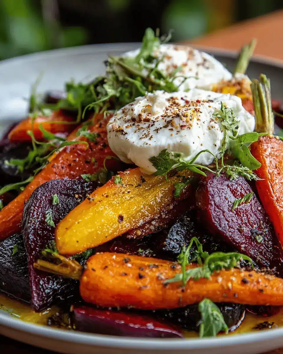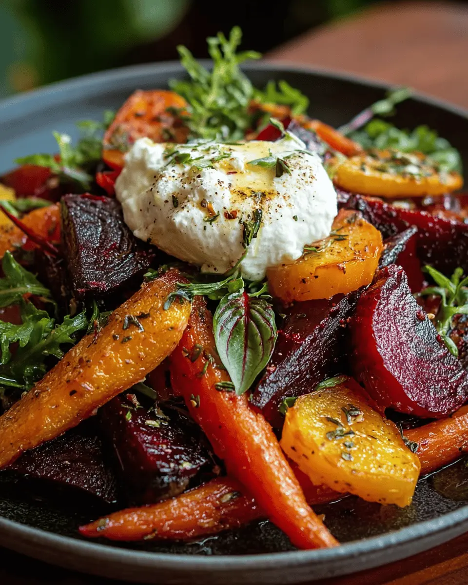In summary, this roasted beets and carrots salad with burrata is not just a feast for the eyes but also a delightful combination of flavors. Perfectly sweet, savory, and creamy, it’s a versatile dish that elevates any meal. Embrace its adaptability throughout the seasons and enjoy every bite!