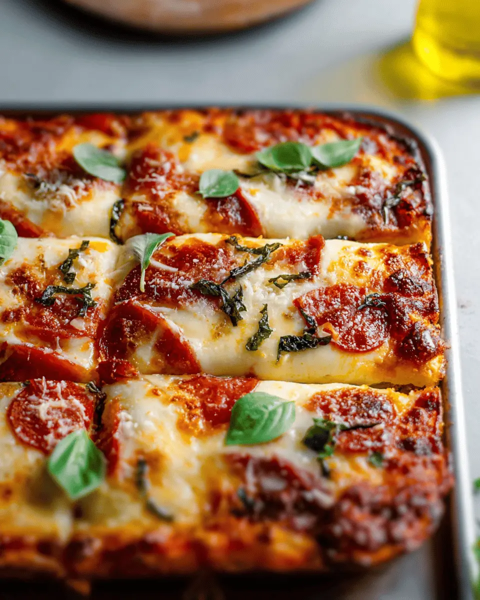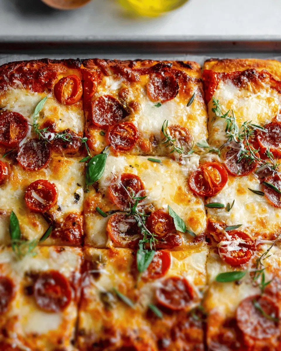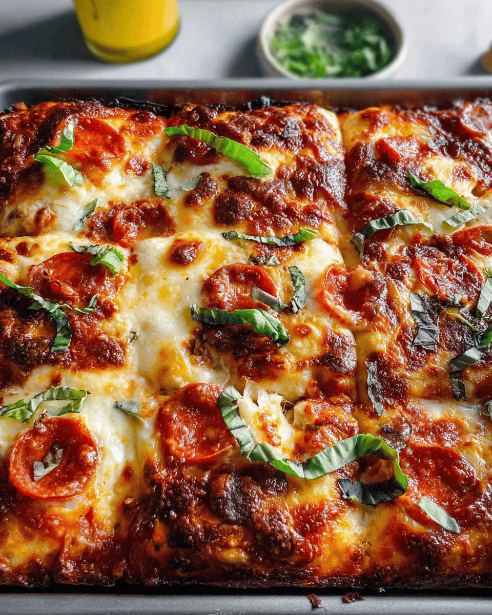 Sheet pan pizza is incredibly versatile, so feel free to get creative! Experiment with different sauces, cheeses, and toppings on a lazy weekend or during a casual gathering with friends. Don’t hesitate to try non-traditional ingredients like grilled vegetables or even a spicy pesto. This dish is perfect for improvisation and tailoring to your personal taste, making every baking session a new adventure!