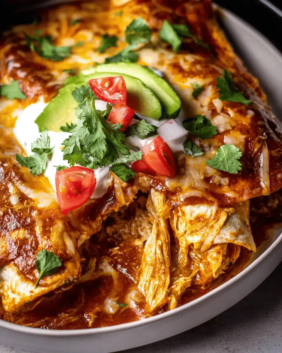 For the best results when making slow cooker chicken enchiladas, consider using boneless skinless chicken thighs instead of breasts. They stay juicier during the slow cooking process. Always make sure your chicken is cooked to an internal temperature of 165°F (75°C) for safe consumption. Shred your chicken right in the pot for added flavor, as it absorbs the delicious sauce!