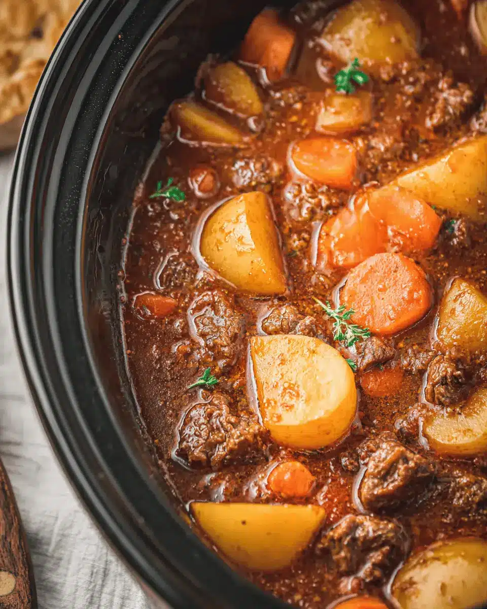When you're making slow cooker poor man’s stew, it's essential to resist the urge to lift the lid during cooking. Each time you do, steam escapes, extending cooking time and potentially affecting flavor and texture. Trust the process!