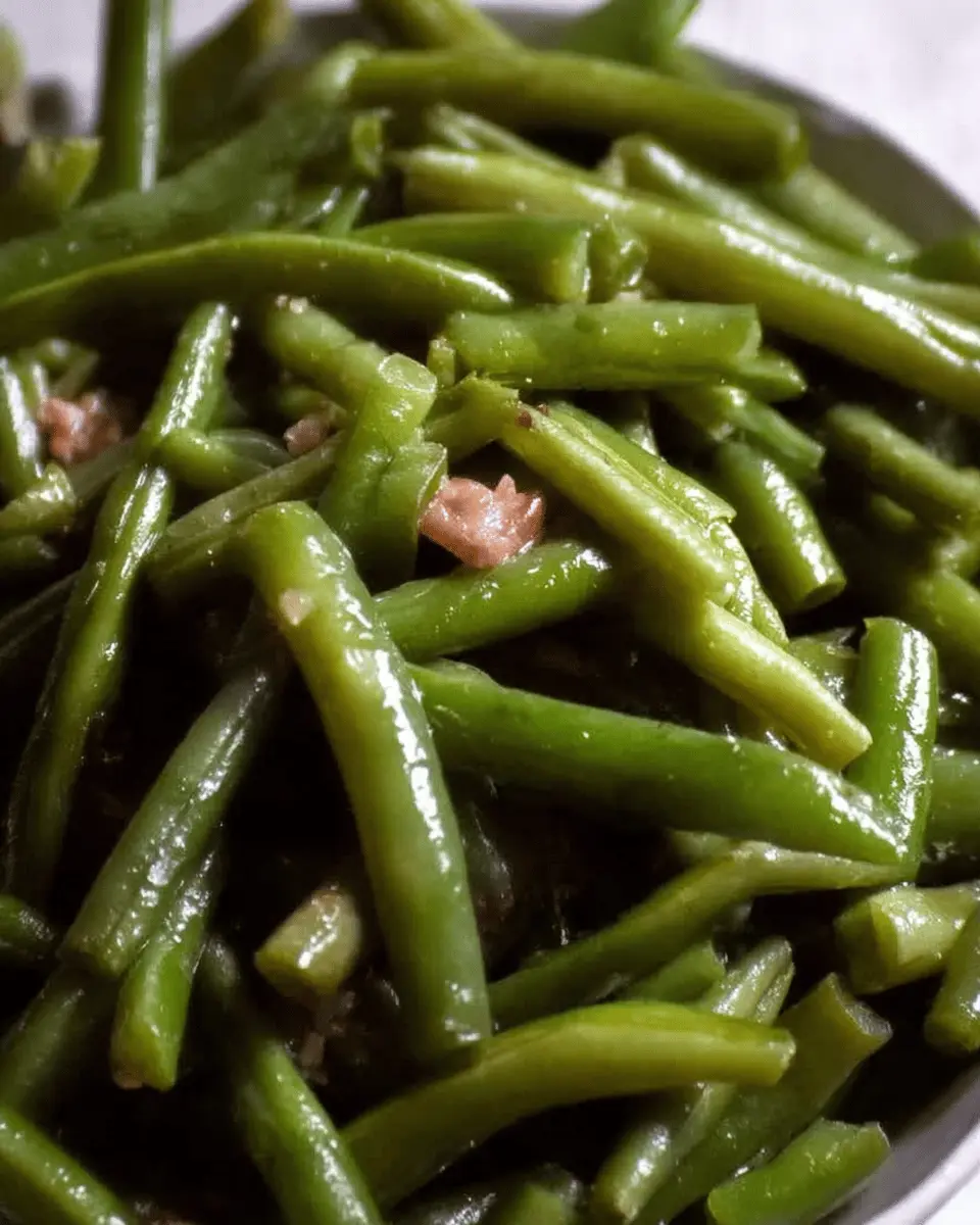 Absolutely! To make your Southern green beans vegan, simply replace the turkey bacon or smoked sausage with plant-based alternatives, such as jackfruit or tempeh. You can enhance the flavor using vegetable broth instead of chicken broth and add a dash of liquid smoke for that smoky taste.