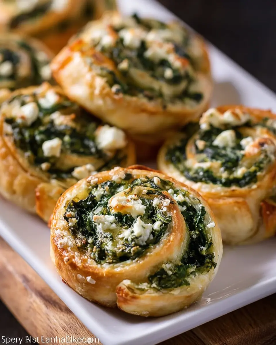 Getting your ingredients ready for these delicious spinach feta pinwheels takes about 20 minutes. This includes mixing all the flavorful components and rolling out your puff pastry to perfection.