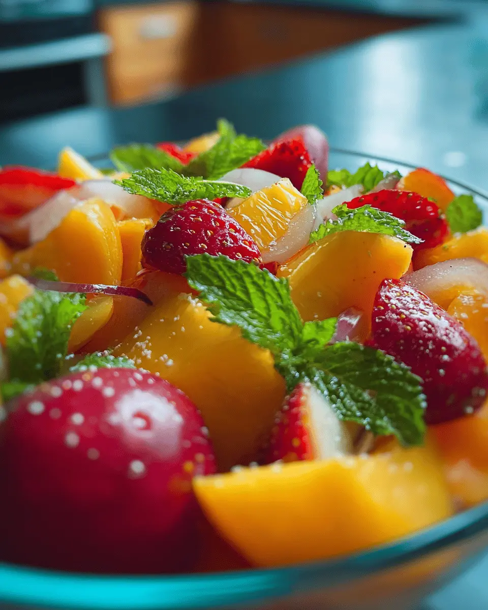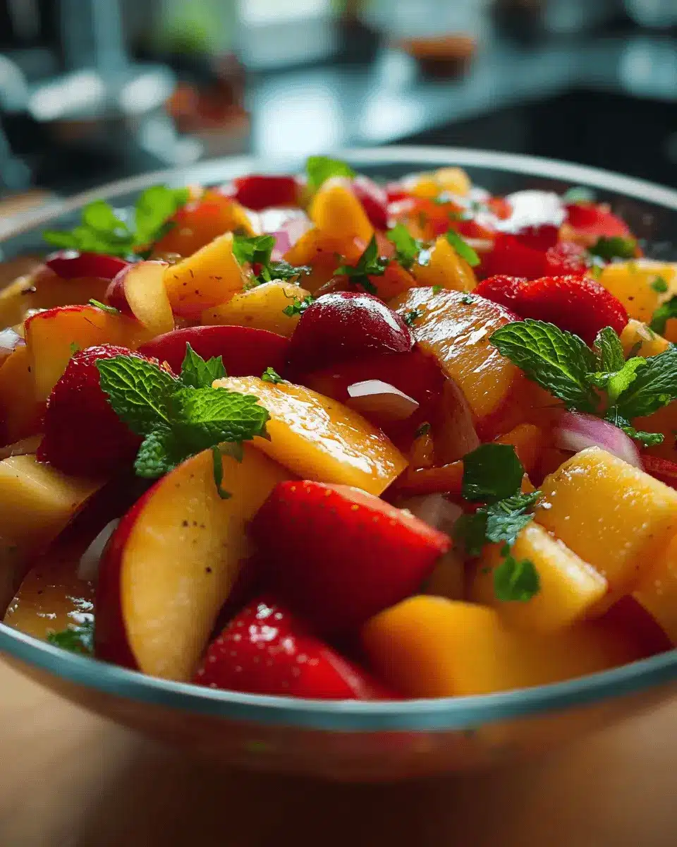Berries and peaches are a match made in heaven! Enhance your summer peach fruit salad by incorporating fresh raspberries and blackberries. These add beautiful color and extra antioxidants, making your dish as healthy as it is delicious. Drizzle a bit of acai syrup or pomegranate glaze for a zesty finish, and you’ve got a salad that’s bursting with flavor!