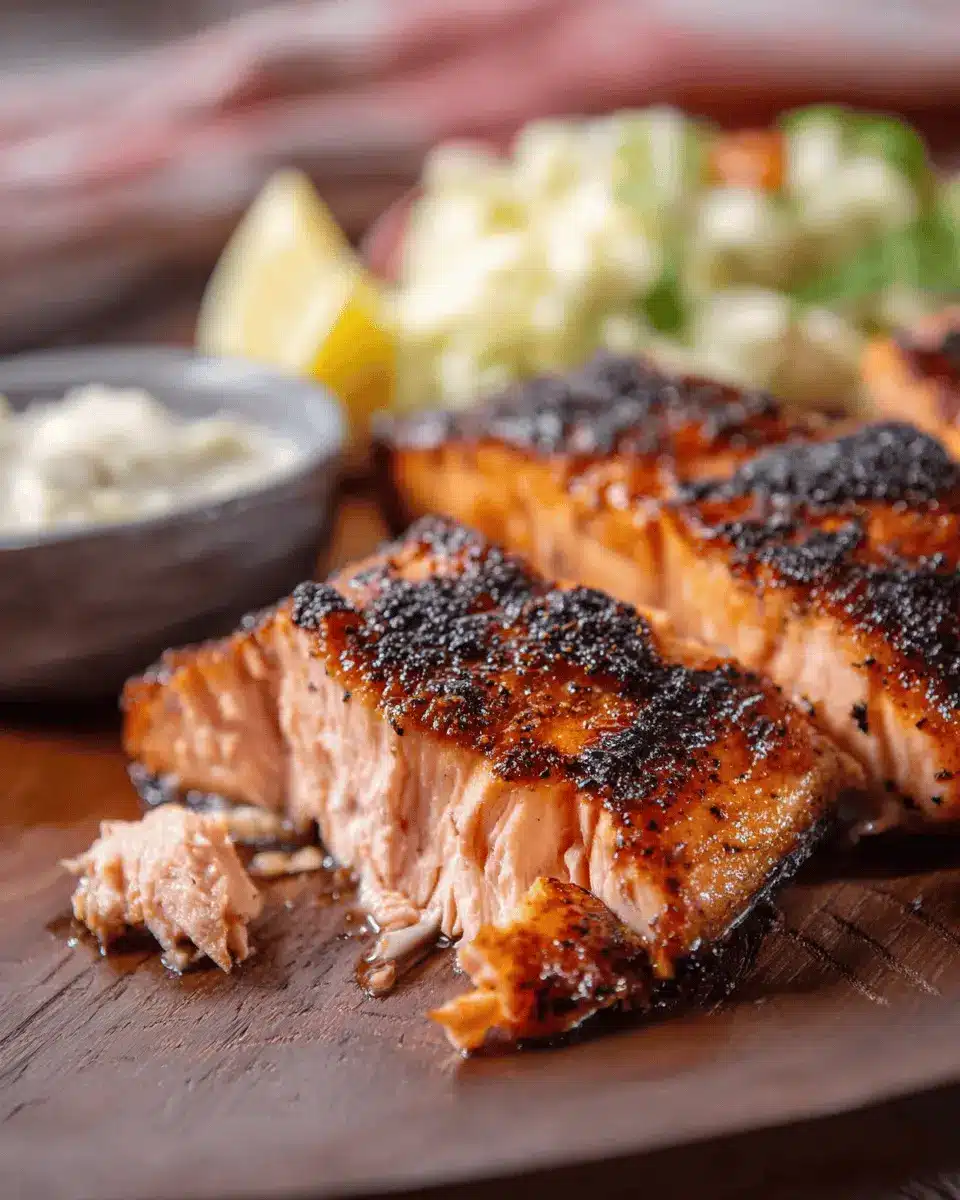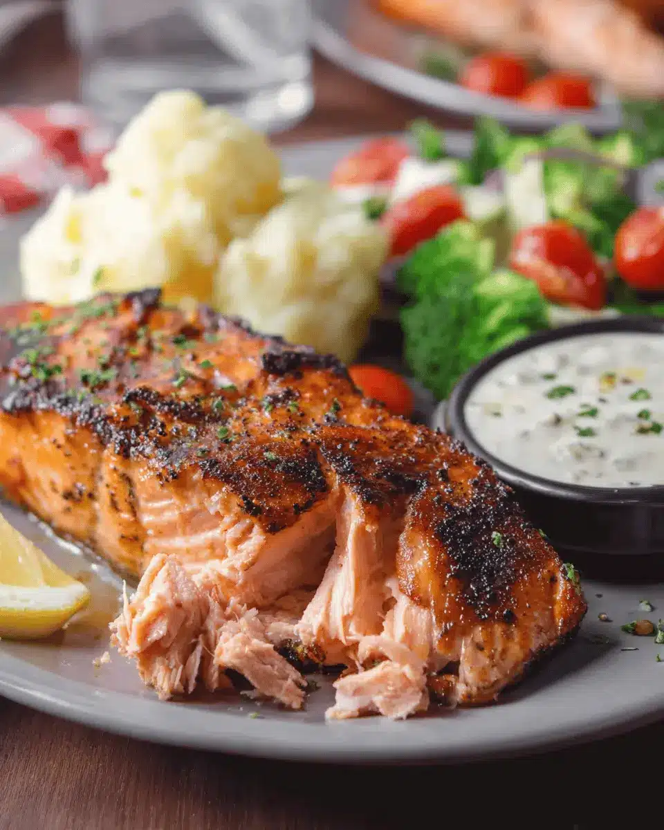 Sides: Serve your salmon alongside creamy mashed potatoes or sweet potato fries for a comforting touch. A fresh garden salad adds a crisp contrast that balances the richness of the fish.
