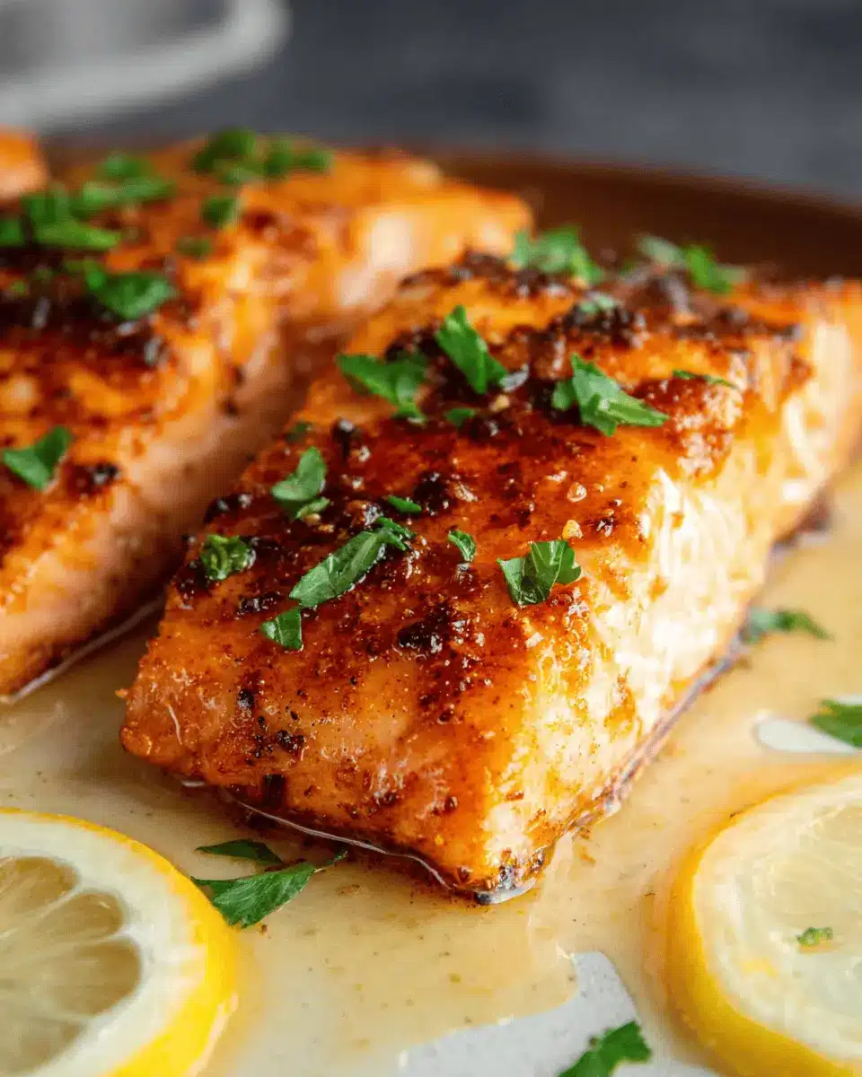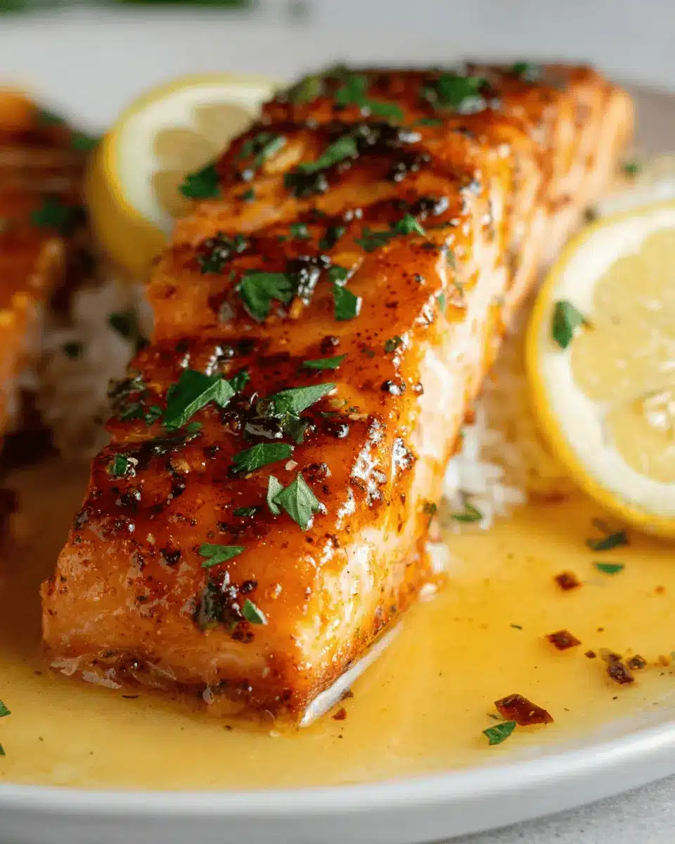 Once your salmon is baked to perfection, take it out of the oven and don’t forget to garnish! Add a few fresh lemon slices on top and consider a sprinkle of parsley or other fresh herbs. This not only adds visual appeal but enhances flavor, too. Serve your delicious honey butter Old Bay salmon with some steamed vegetables or over a bed of quinoa for a complete meal. And there you have it! A simple yet incredibly satisfying dish that’s perfect for any occasion.