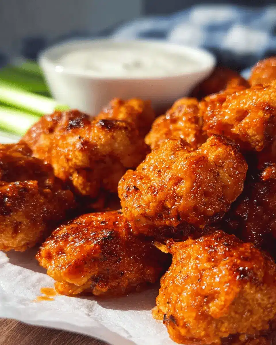 Pair your Vegan Cauliflower Buffalo Wings with a variety of sides to enhance the experience. Fresh veggies like celery and carrots add a refreshing crunch, while crispy fries or a light salad can complement their bold flavors. For dipping, a zesty dairy-free ranch dressing is a must-have, providing a creaminess that balances the spicy kick of the wings.