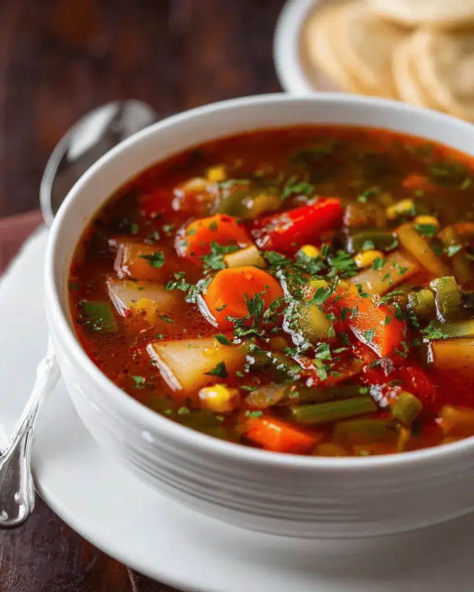 Looking to elevate your vegetable soup experience? Dive into a Mediterranean twist! Swap the standard broth for a rich, homemade vegetable broth for an enhanced flavor profile. Incorporate ingredients like diced zucchinis, chickpeas, and a handful of spinach. For a burst of flavor, add a spoonful of pesto or a sprinkle of feta cheese right before serving. This variation not only warms you up but also transports your taste buds to the sunny shores of the Mediterranean.